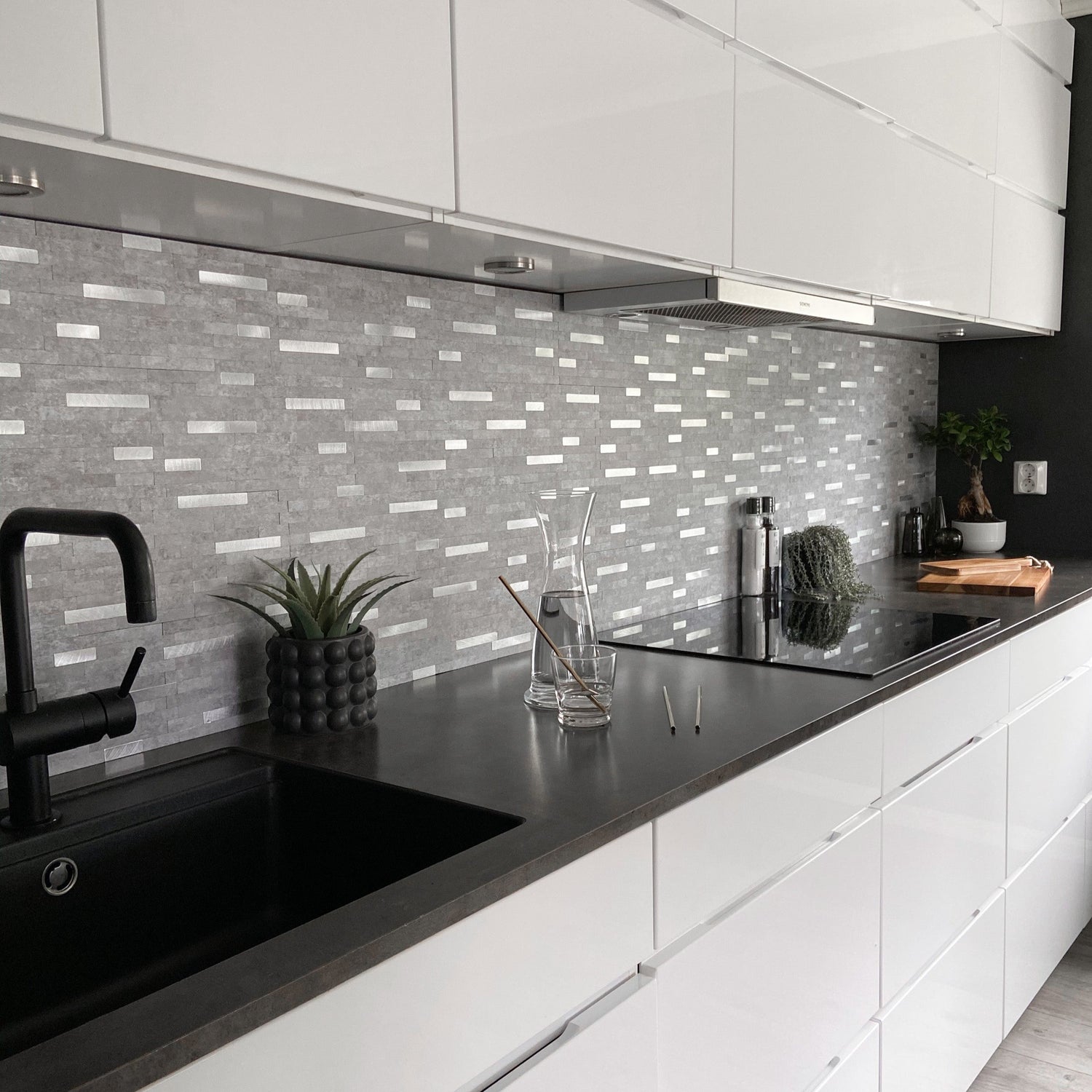 Exempel: SjÀlvhÀftande vÀggplattor i ljusgrÄ sten
