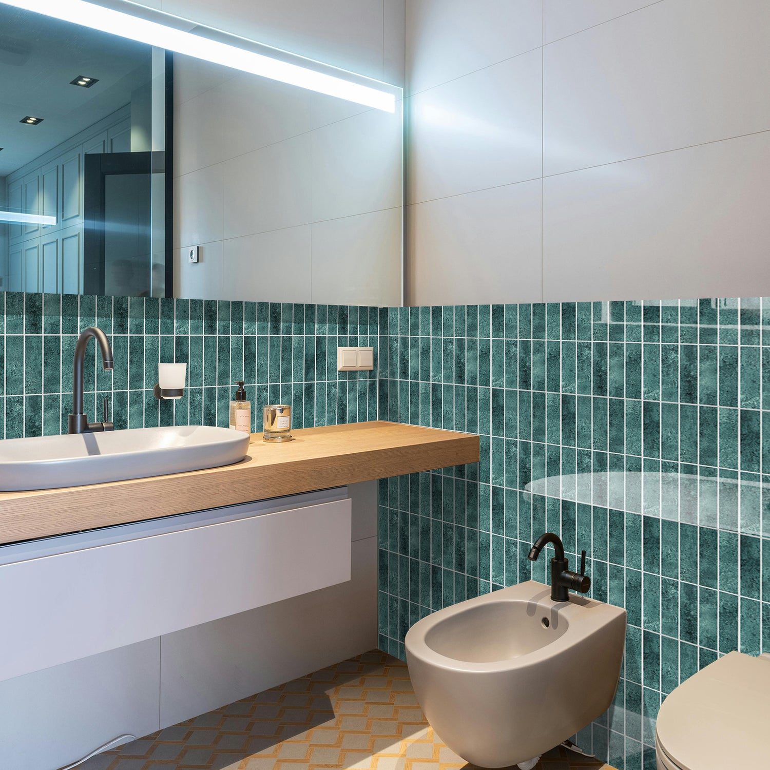 Exempel: Alma högglansgrön självhäftande väggplattor