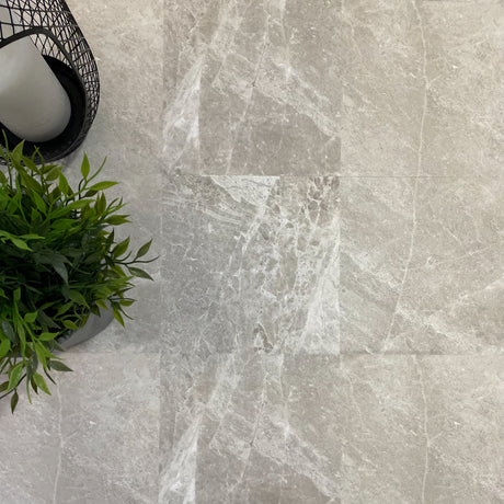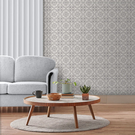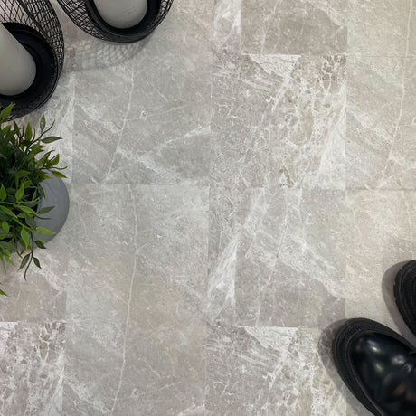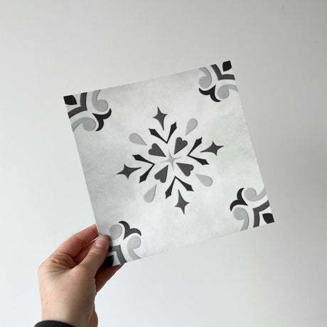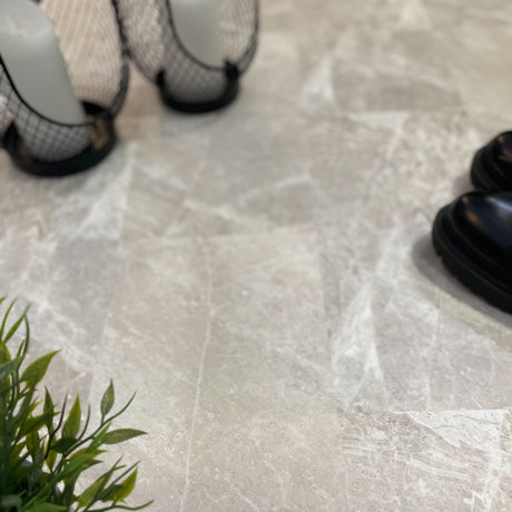 Exempel: Mathilde ljusgrå självhäftande plattor