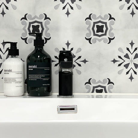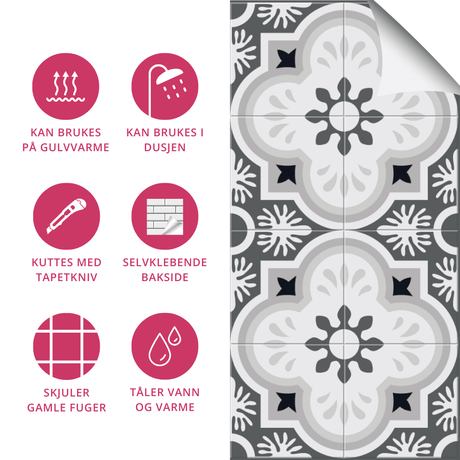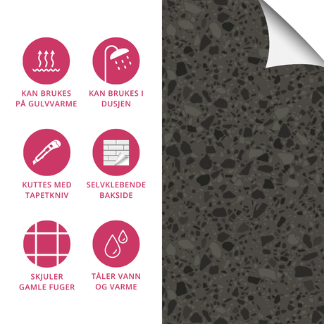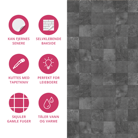 Exempel: Bodø mörkgrå självhäftande kakelplattor