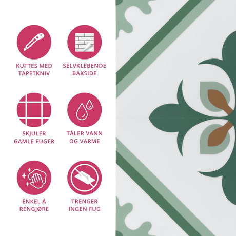 Exempel: Mathilde ljusgröna självhäftande plattor