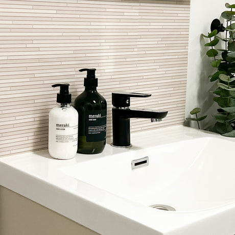 Exempel: Limebeige självhäftande plattor