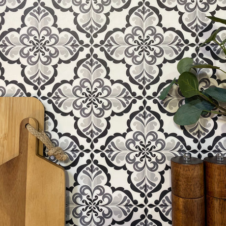 Exempel: Lisboa Terrazzo mörkgrå självhäftande plattor