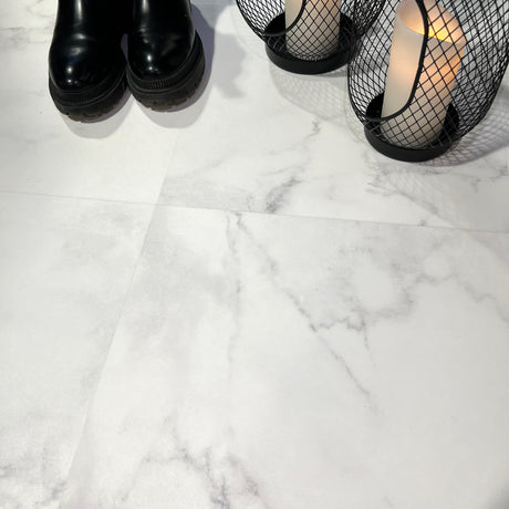 Prov: Självhäftande plattor i vit marmor från Athena