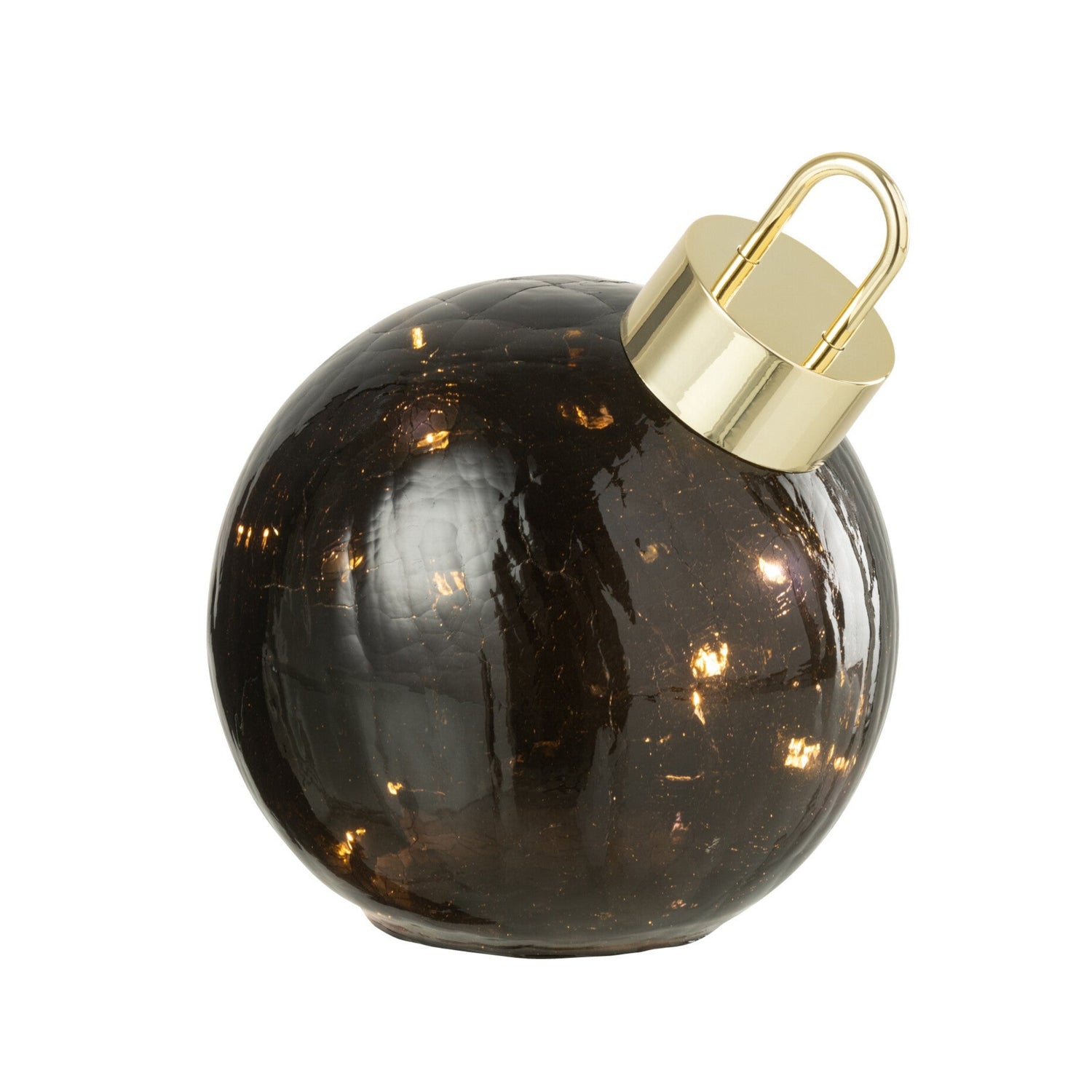 Gi julepynten et moderne preg med denne elegante julekula i svart glass med LED-lys. Den lille dekorasjonskulen sprer et varmt og stemningsfullt lys som skaper kontrastfull og stilren julestemning. Perfekt som bordpynt, i vinduskarmen eller kombinert med andre julekuler i forskjellige farger.