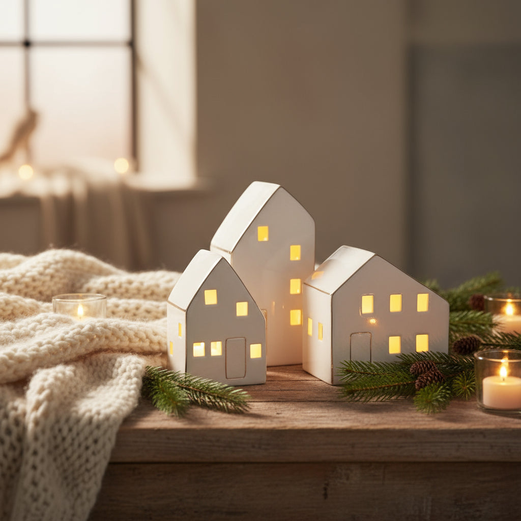 Gjør hjemmet ditt mer innbydende med det vakre porselenhuset Nordby. Dette elegante dekorative huset er 9,9 cm høyt og 9,7 cm bredt, med en innebygd LED-lysfunksjon som skaper en behagelig og varm glød gjennom vinduene.