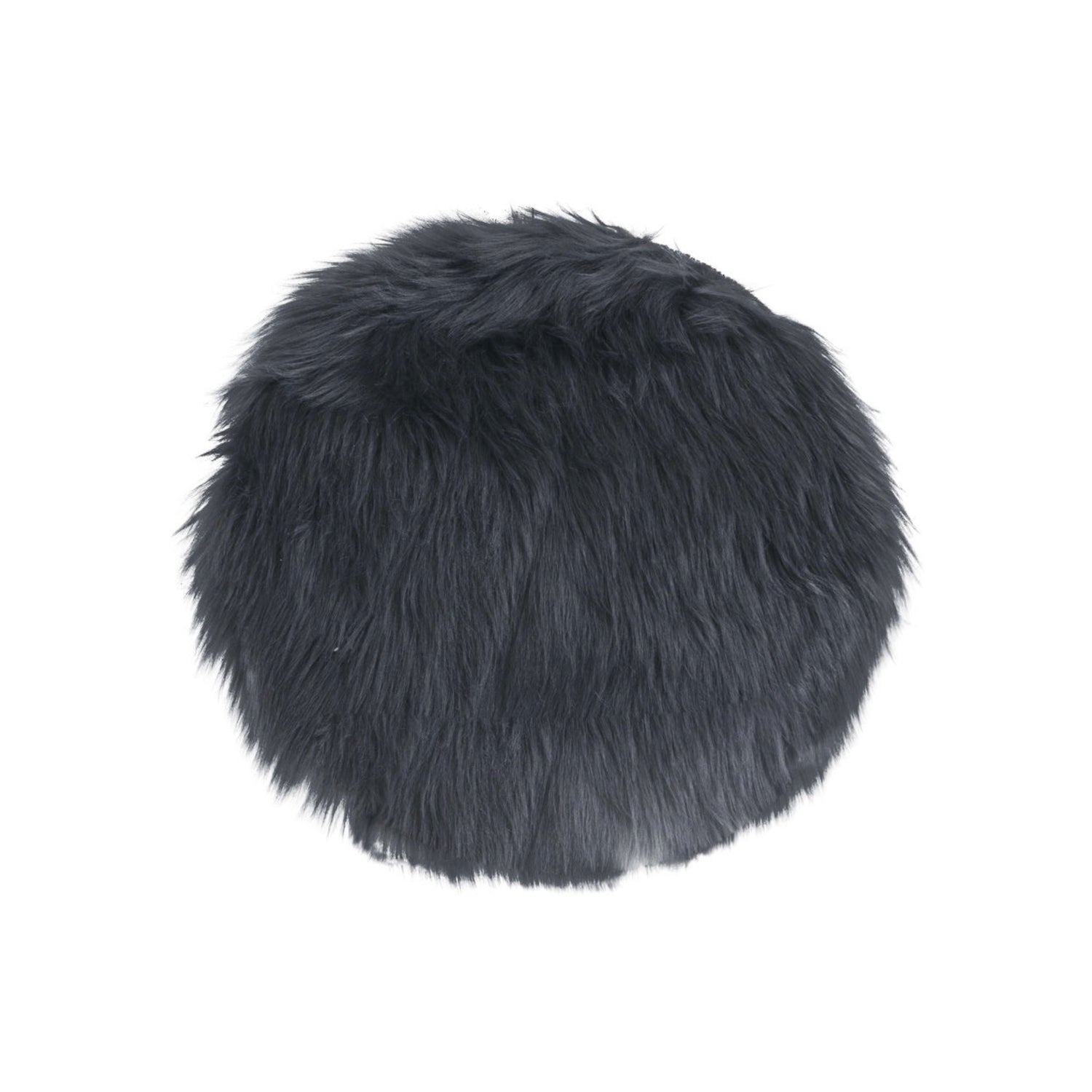 Rundt sitteunderlag i grått kunstig saueskinn, Ø35 cm – mykt og dekorativt