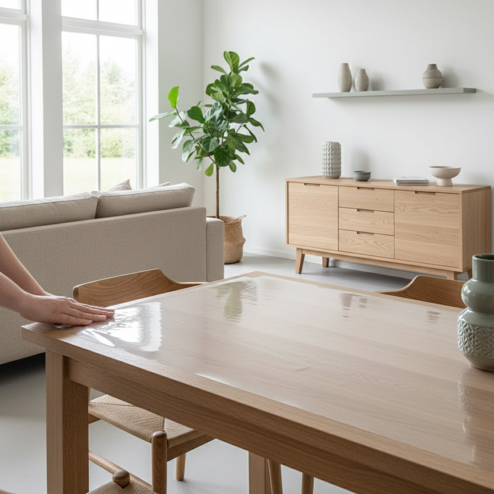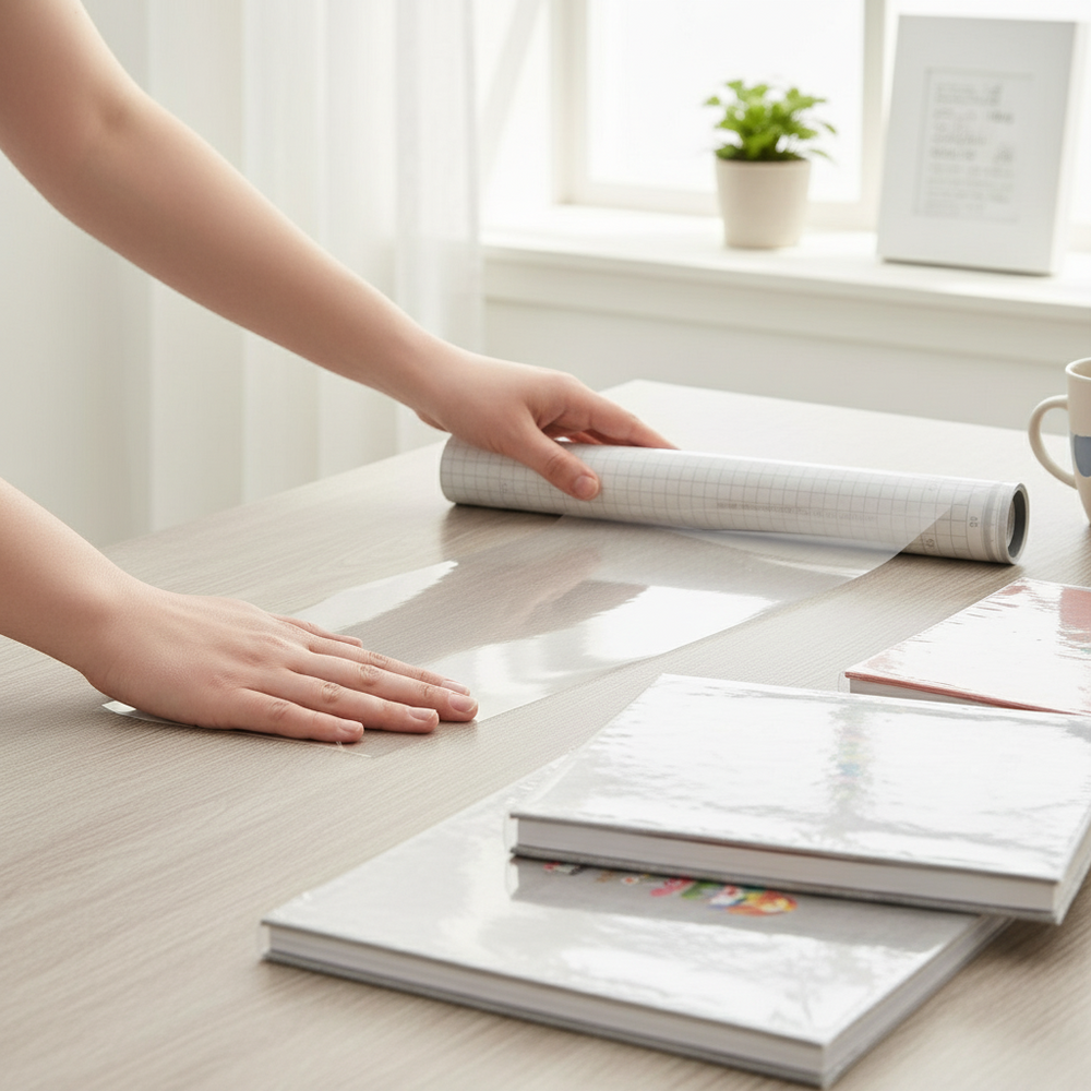 Transparent glossy kontaktplast er et praktisk valg når du vil beskytte overflater uten å endre fargen eller strukturen på møblet. Folien er selvklebende og kan legges på tre, glass, plast og malte flater. Den sørger for at bordplater, skuffer, bokomslag og andre bruksflater holder seg pene lenger.