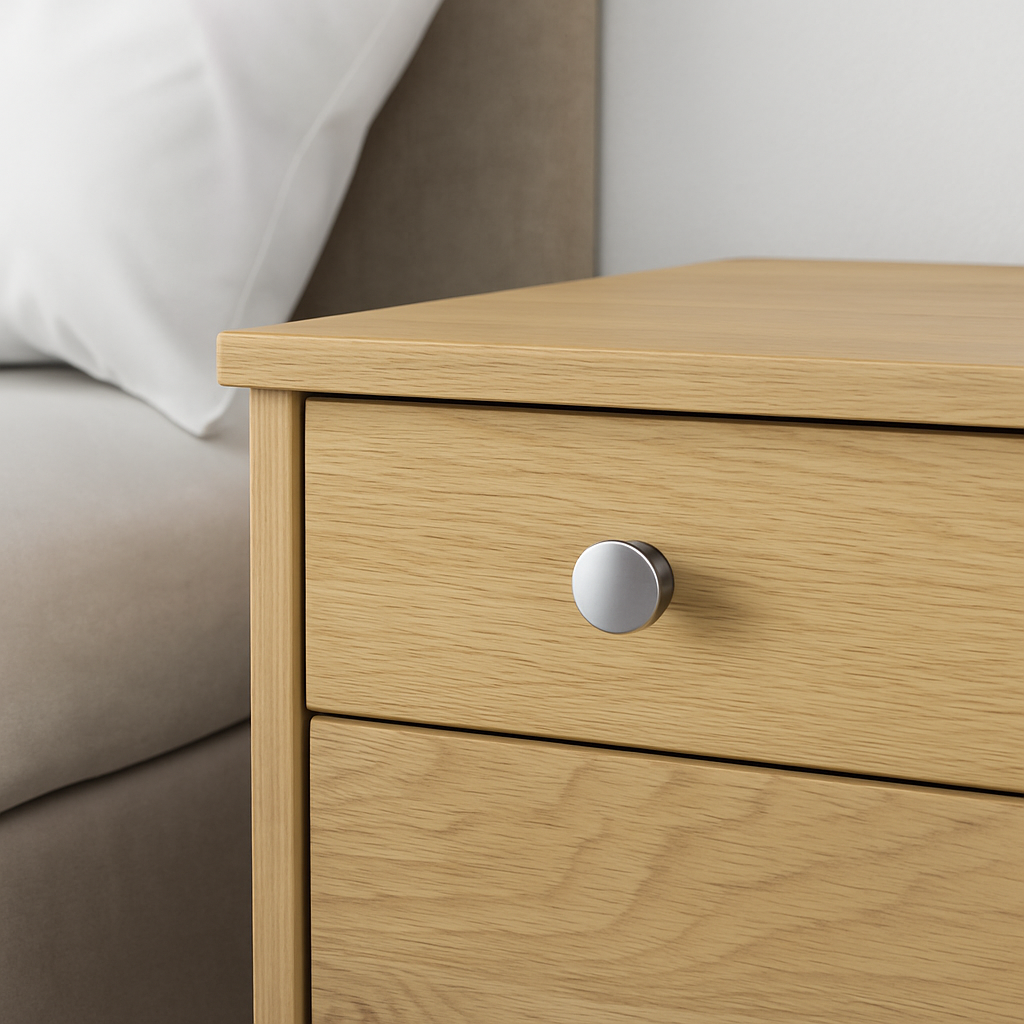 Knott beslag børstet stål med et solid design som gir et stilig og smakfult utrykk. Knotten passer like godt til møbelknott som til baderomsinnredningen din.