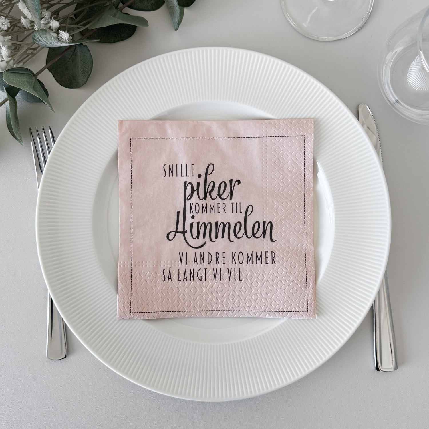 Pakke med 3-lags papirservietter til selskap, syforening eller jentekveld. De grå serviettene har en humoristisk tekst