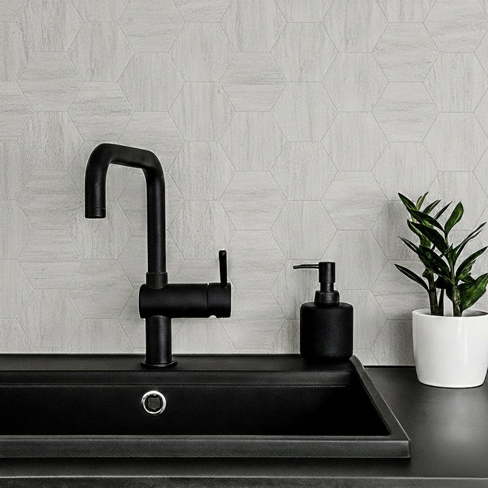 10-pk Hexagon lysegrå betong selvklebende veggfliser