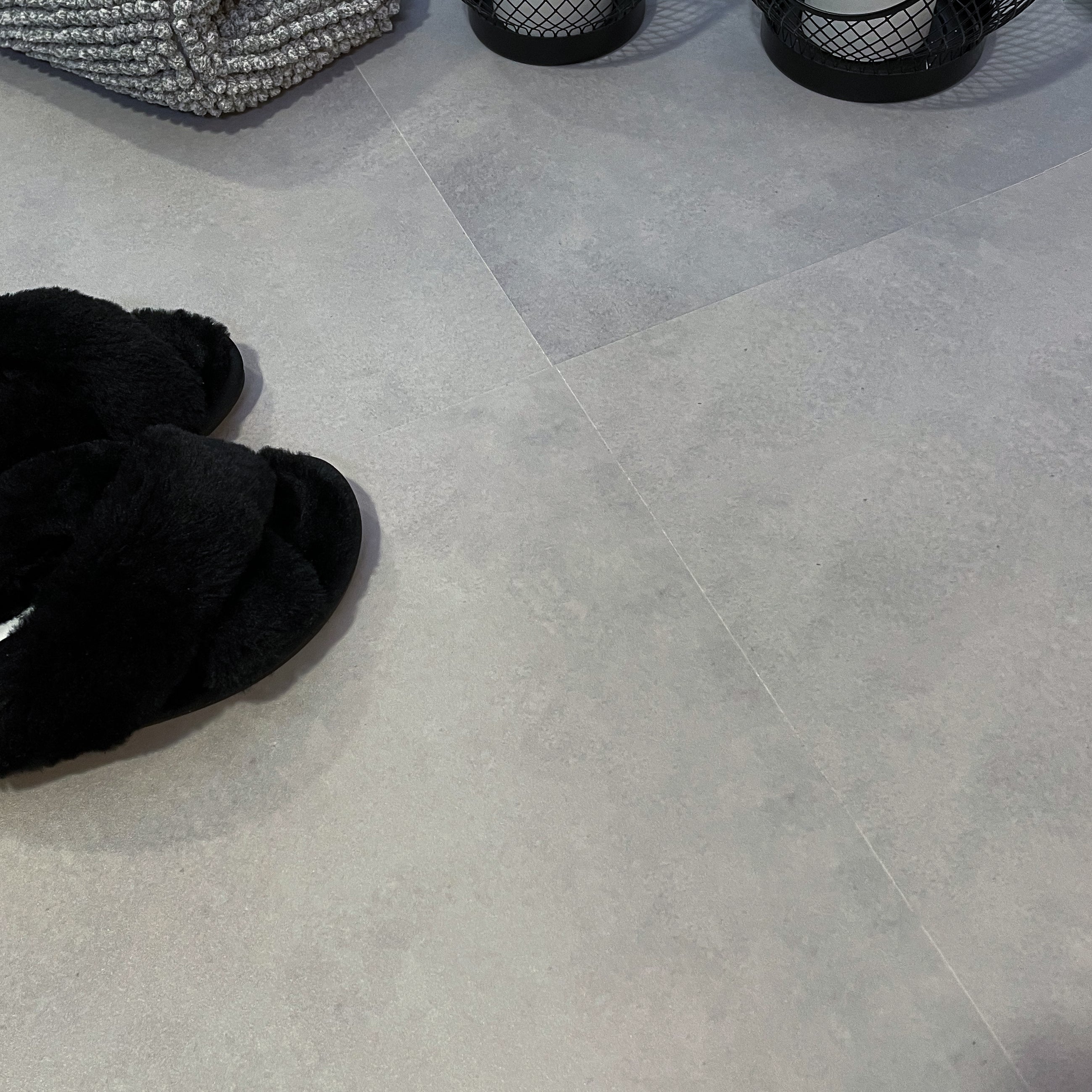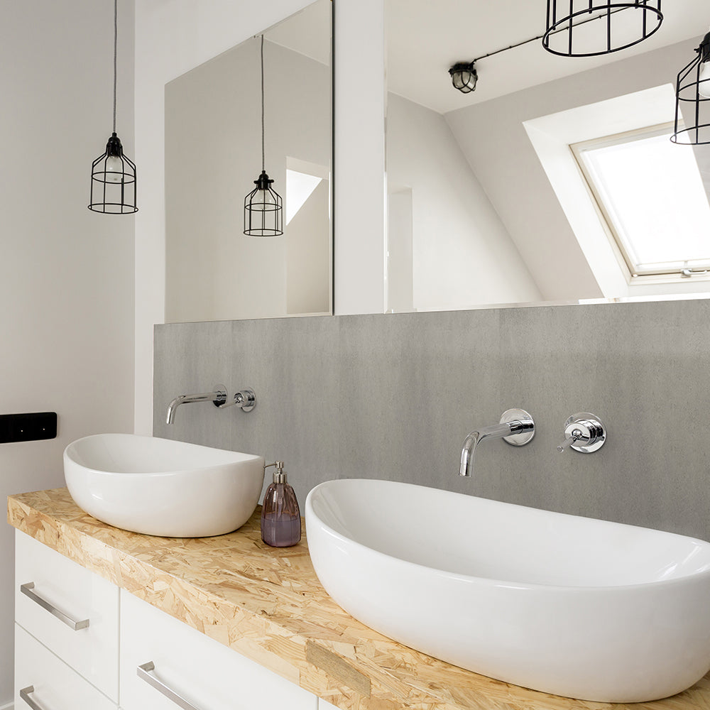 Berlin betong selvklebende fliser gir hjemmet et moderne og elegant preg som passer perfekt i nordiske interiører. Flisene har en elegant mellomgrå farge med grønne undertoner som gir en rolig og moderne atmosfære. Den subtile betonglooken gjør at de harmonerer spesielt godt med kalde fargetoner, og de kan brukes både på kjøkken, bad, gang eller vaskerom.