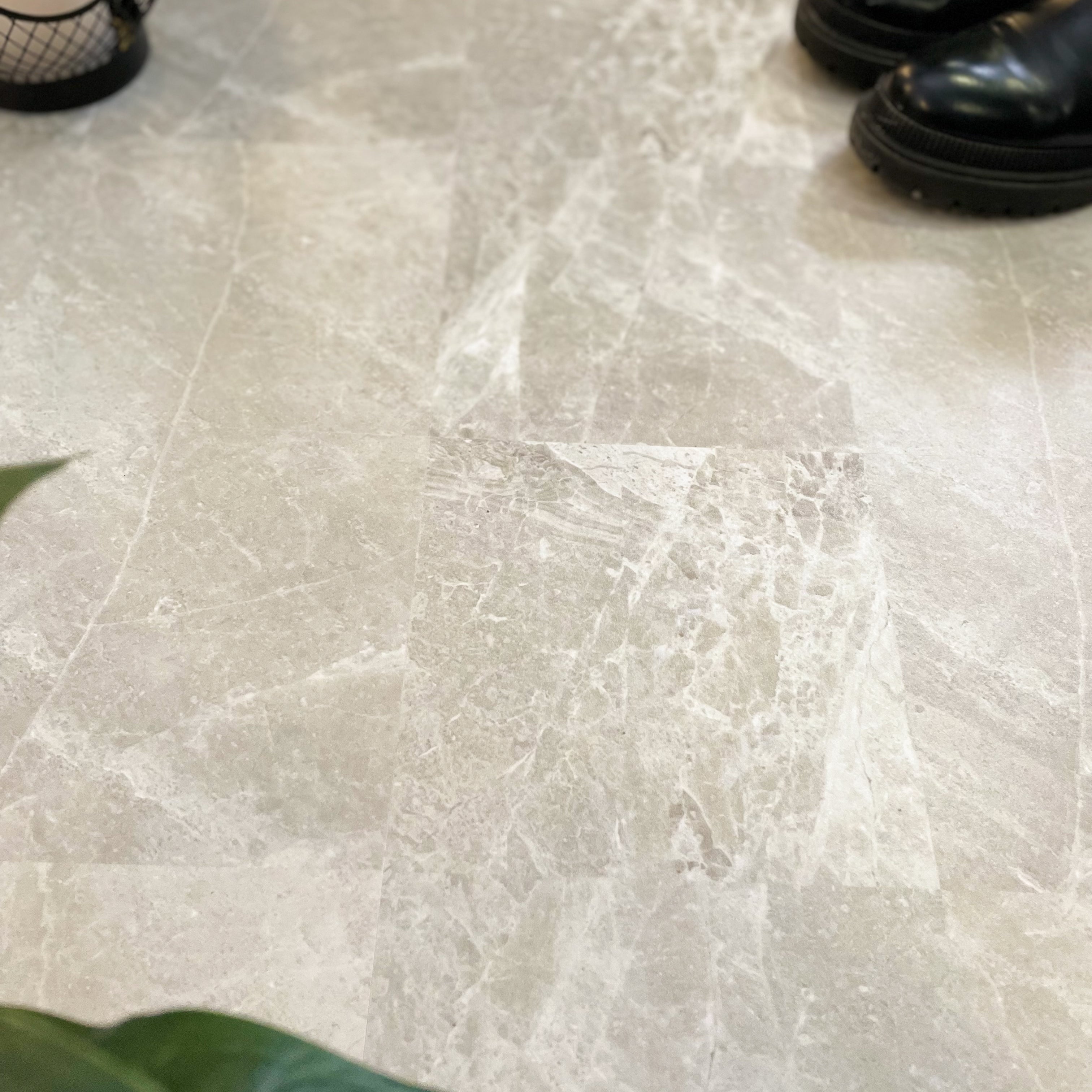Våre kalk beige selvklebende fliser gir deg et elegant uttrykk, inspirert av ekte kalkstein i lyse nyanser av beige og hvitt. Den diskrete marmoreringen tilfører liv og dybde, uten å ta over rommet.