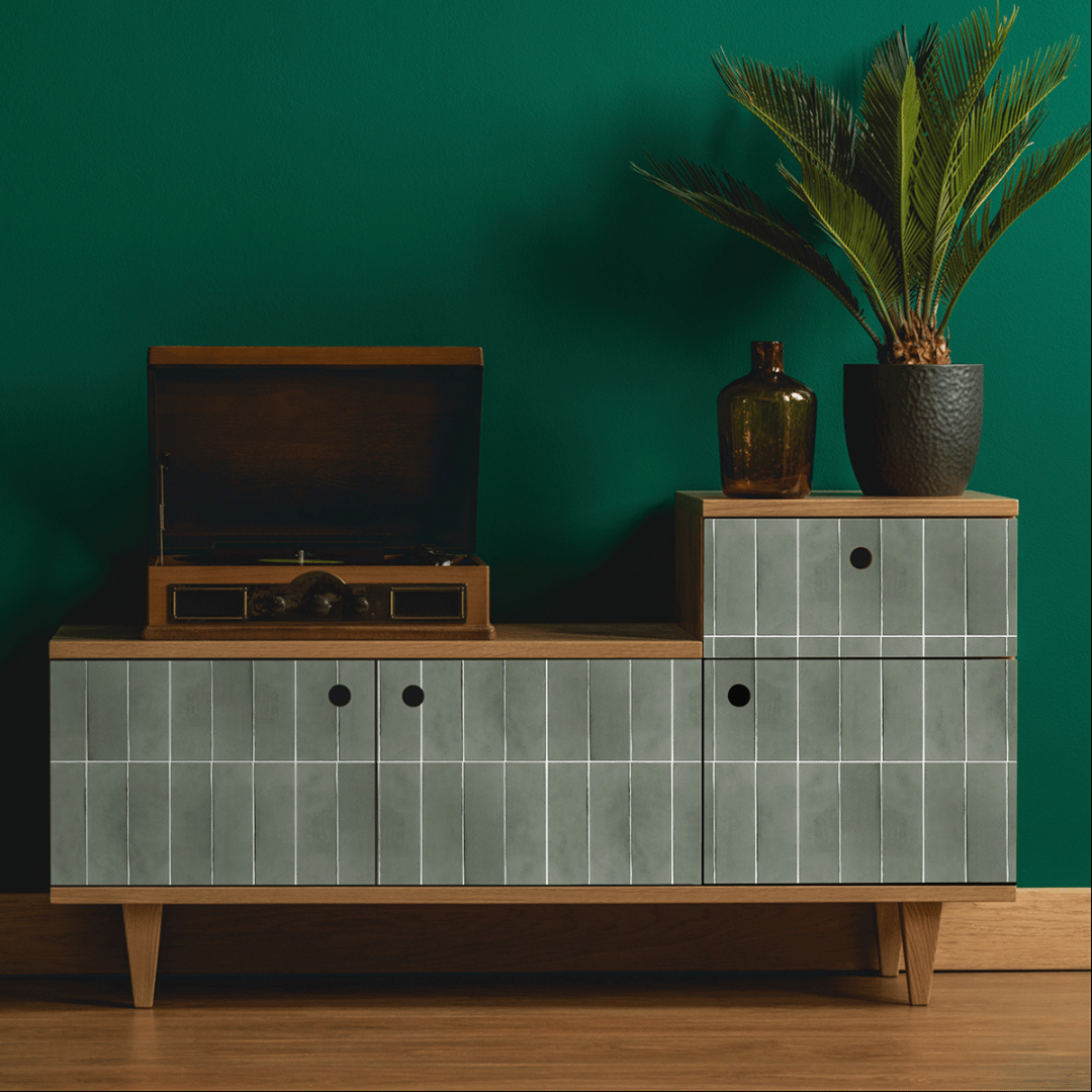 Flisene er enkle å montere helt uten bruk av lim, fug eller spesialverktøy. Du fjerner bare beskyttelsesfilmen og fester flisene rett på en jevn og ren overflate. Katja Olivengrønn egner seg perfekt til veggen over kjøkkenbenken, bak baderomsinnredningen eller til kreative DIY-prosjekter som skapdører og kommoder.