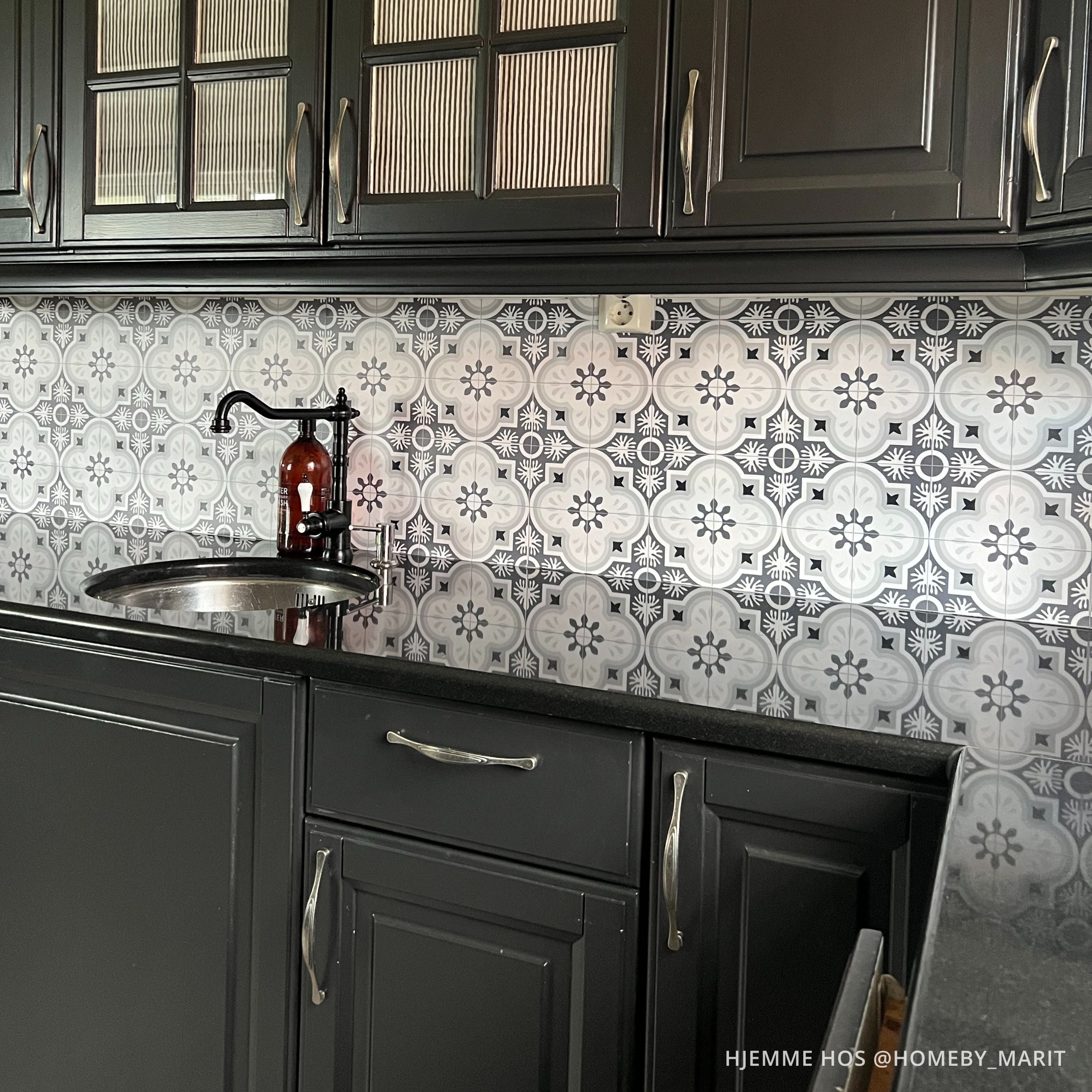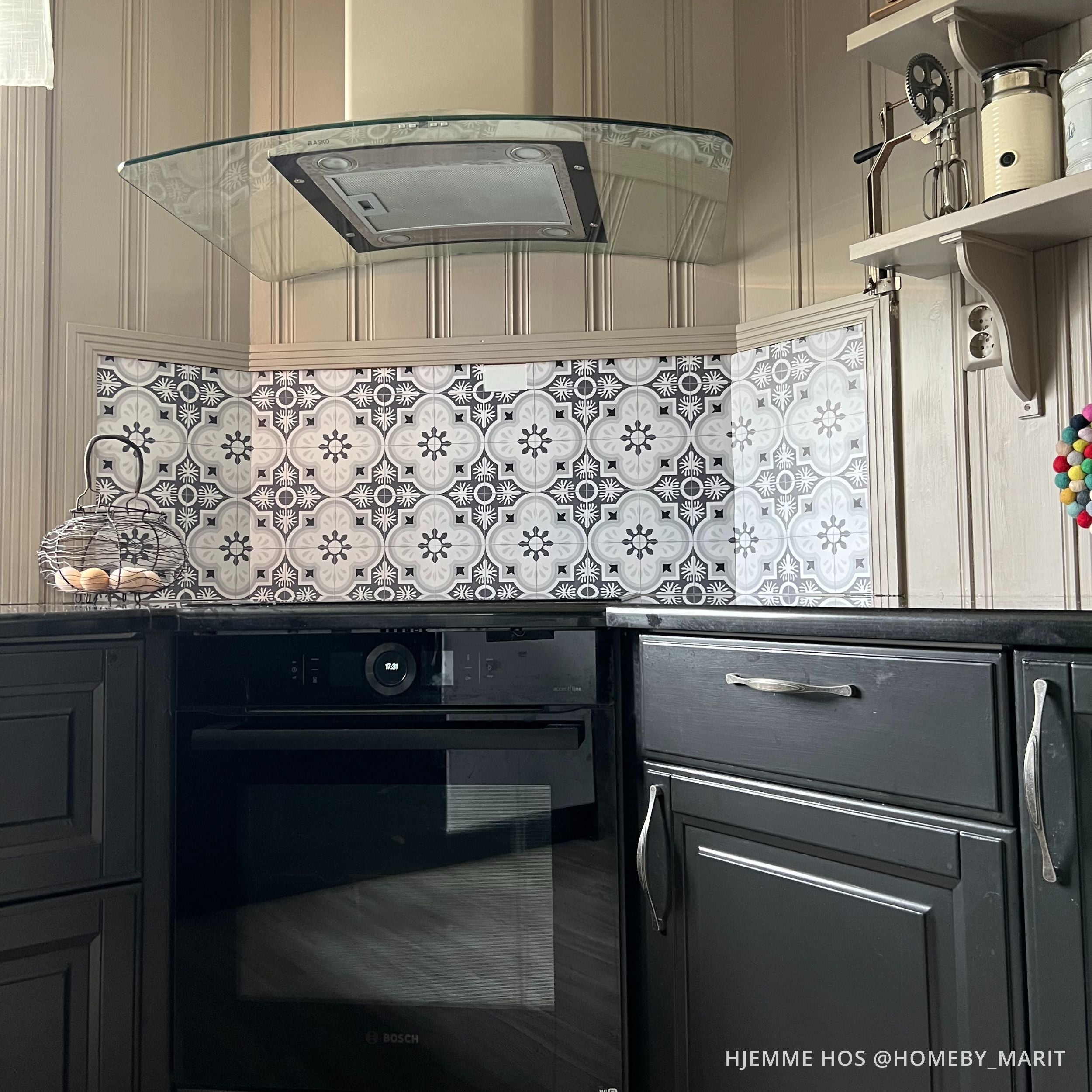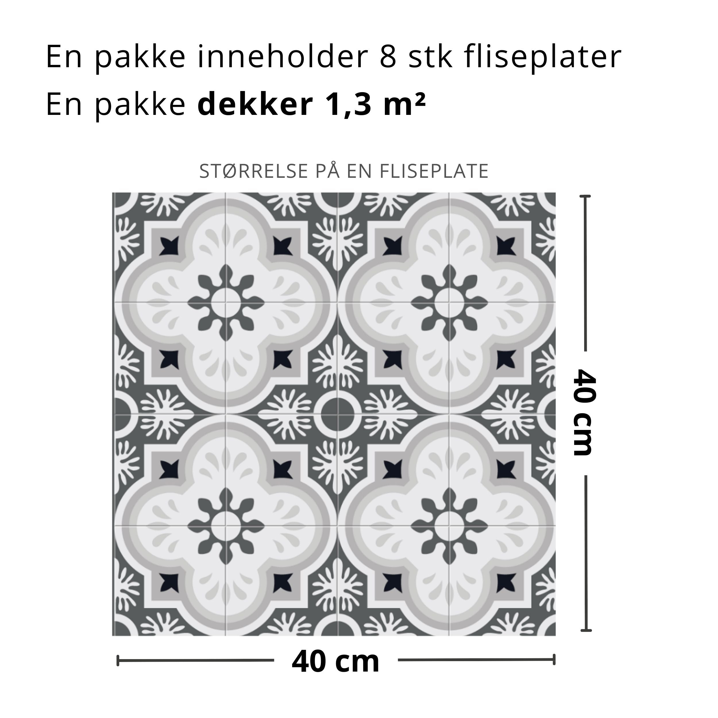 Copenhagen selvklebende fliser har et nydelig elegant, historisk design med lav kontrast. Ideelt for deg som ser etter litt mønster uten at det er for overbærende.