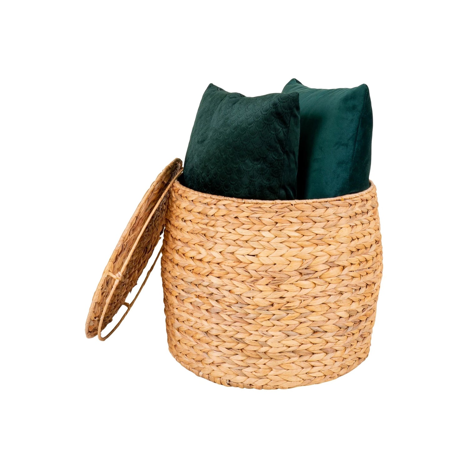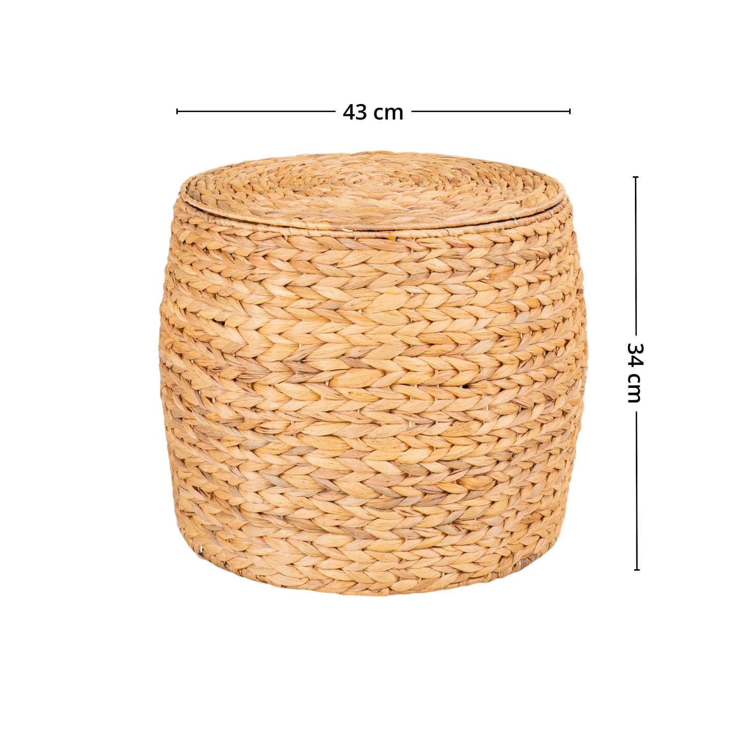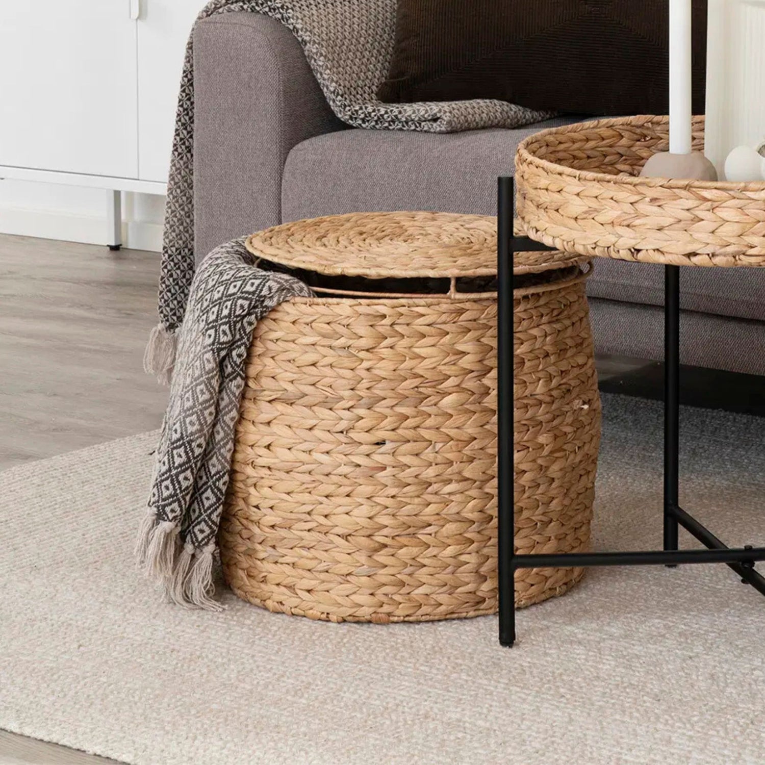Delia sidebord fra House Nordic kombinerer stil og smart oppbevaring i ett. Bordet er flettet i vannhyasint og har et avtagbart lokk som skjuler praktisk lagringsplass - perfekt til pledd, puter eller småting.