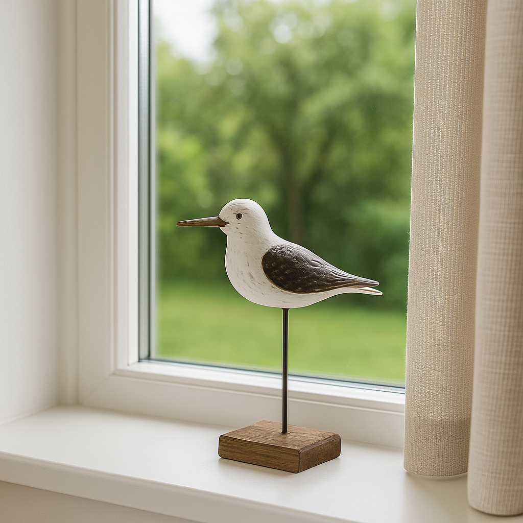 Med sitt rustikke uttrykk, håndmalte detaljer og solide trebase passer denne figuren perfekt inn i både sommerhytter, strandinspirerte hjem og nordiske interiørstiler. Den enkle, stilrene formen gjør den til et vakkert blikkfang på en hylle, kommode eller vinduskarm.