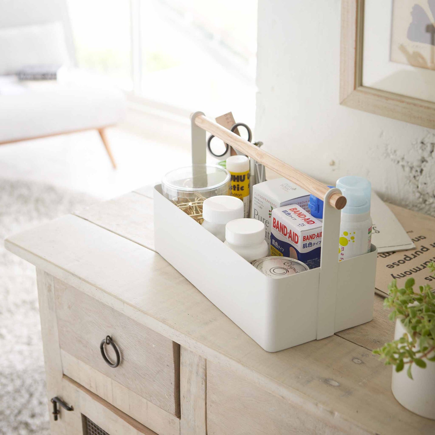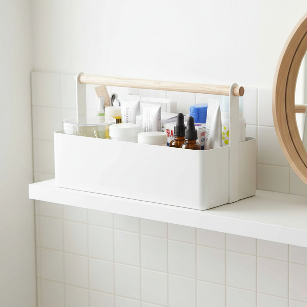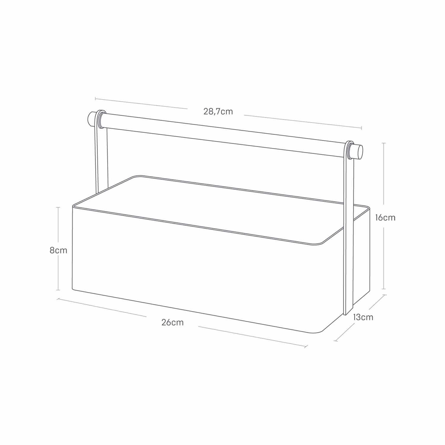 Oppbevaringsboks i stål med trehåndtak hvit 29 x 16 cm