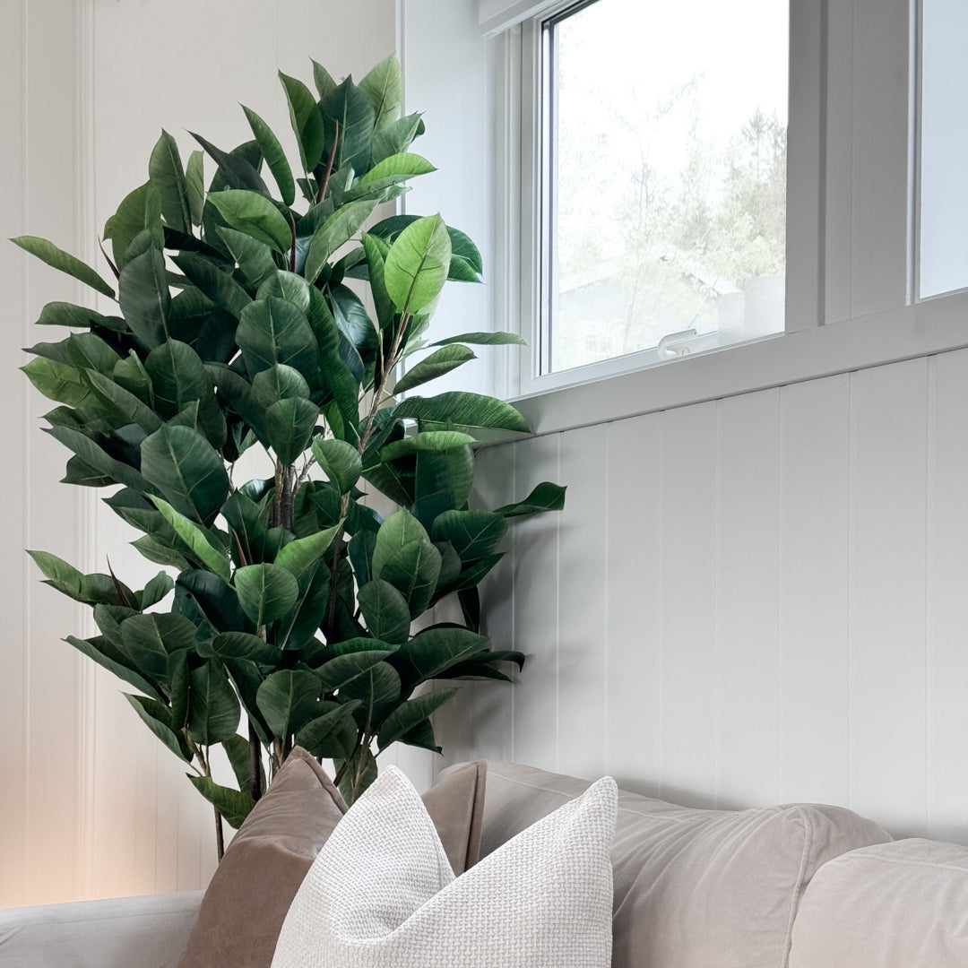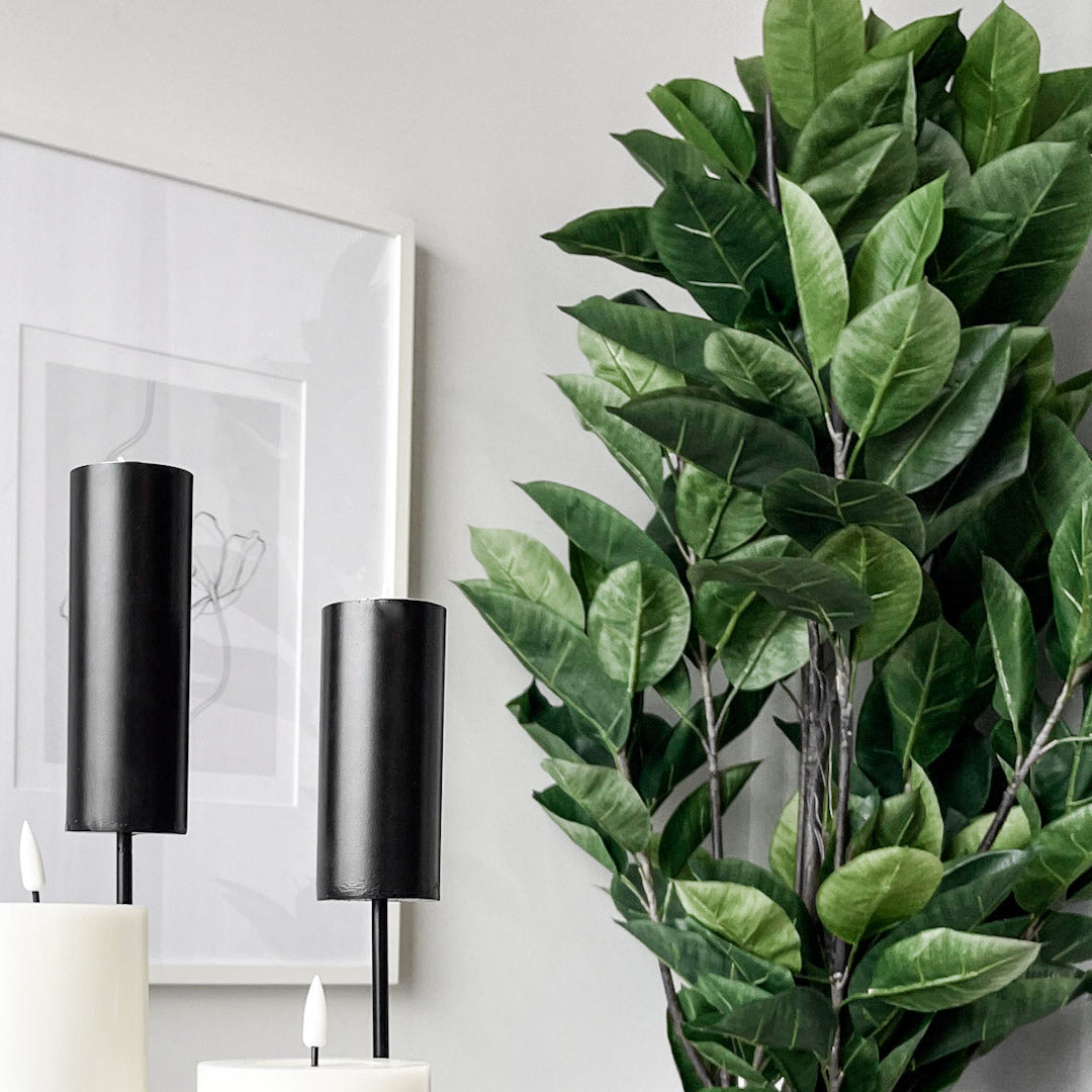 Vil du fylle rommet med grønt uten vanning, jord og vedlikehold? Denne kunstige Fikus Robusta fra Mr. Plant gir et frodig og naturtro uttrykk som skaper mer liv i interiøret med en gang.