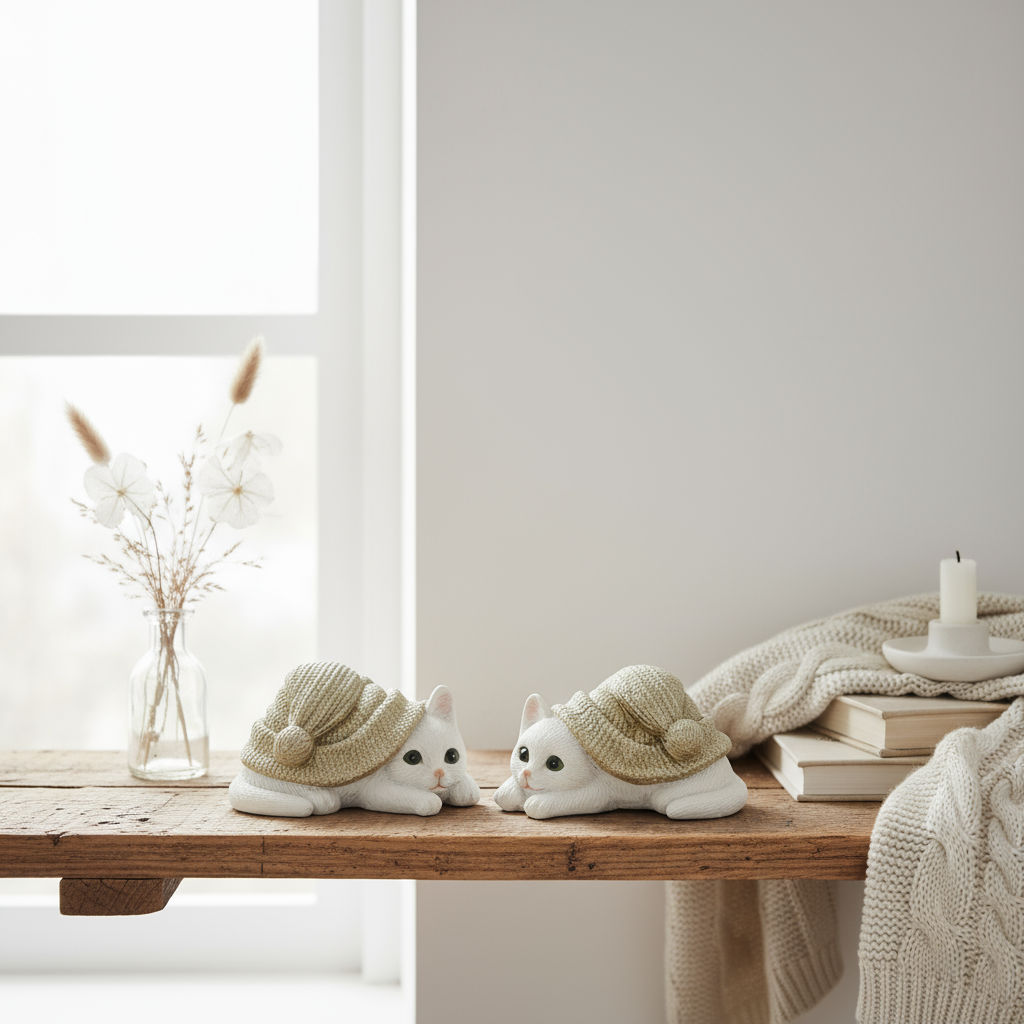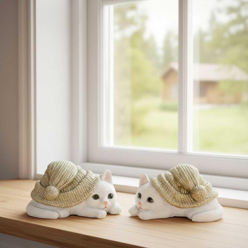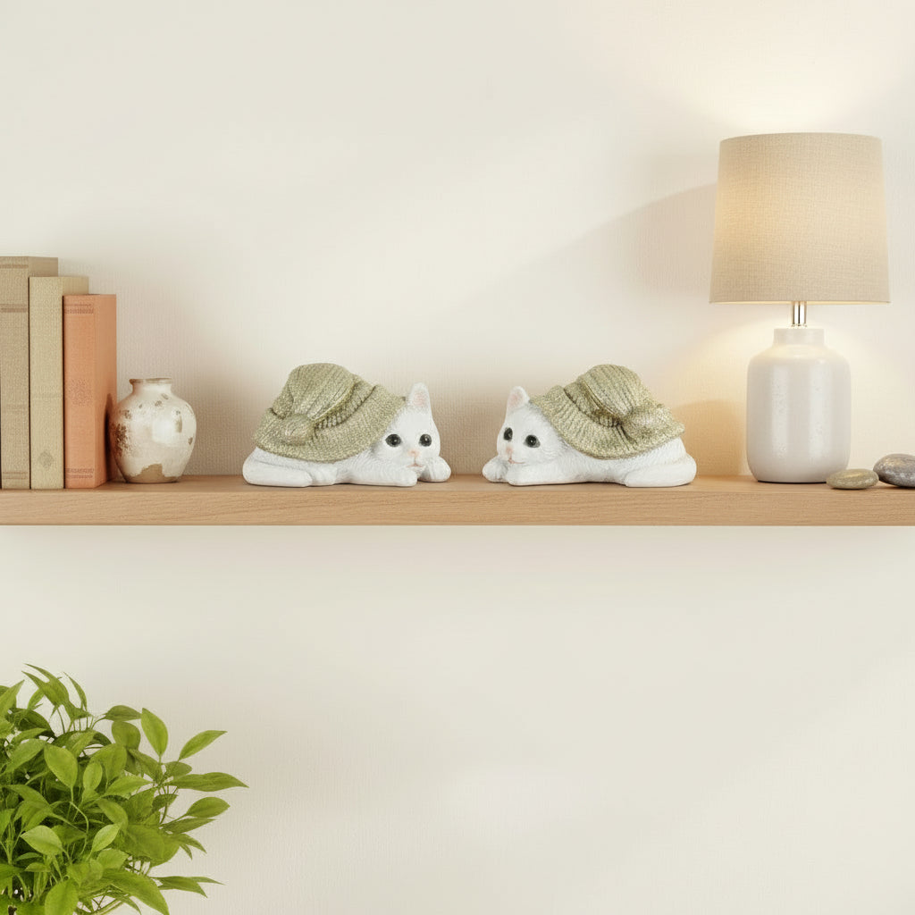 Disse søte kattefigurene i polyresin med grågrønne luer passer perfekt som dekorasjon i hjemmet ditt. Med sitt lekne uttrykk og detaljerte utforming gir de en koselig stemning, enten de plasseres på en hylle, i en vinduskarm eller som del av en borddekorasjon.