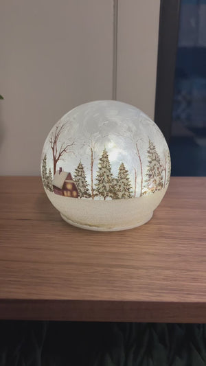 LED lyslykt i glass med vintermotiv – dekorativ julelykt med snødekt landskap, perfekt til jul og vinterdekor i hjemmet.