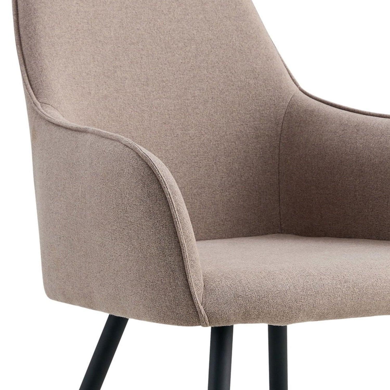 Med sitt romslige sete, komfortable armlener og slitesterkt stoff i fargen Stone, gir stolen en behagelig sitteopplevelse. De svarte metallbena tilfører et elegant og stabilt preg.
