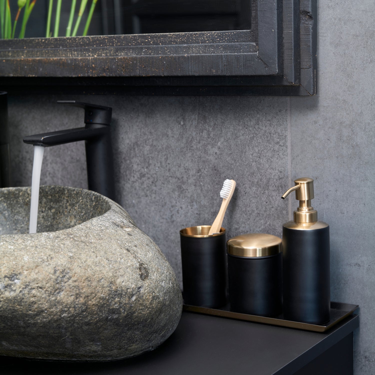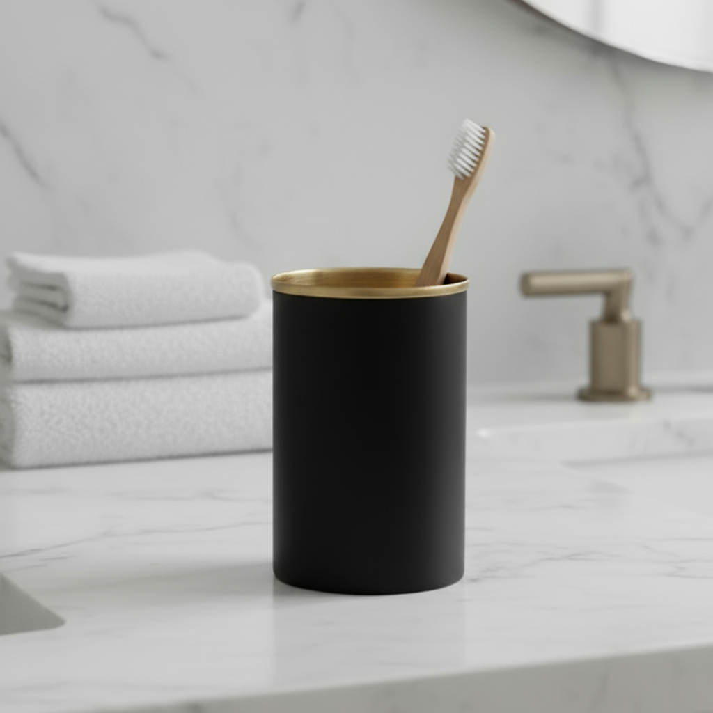 Halvor Bakke Gio tannbørsteholder i sort metall og matt gull
