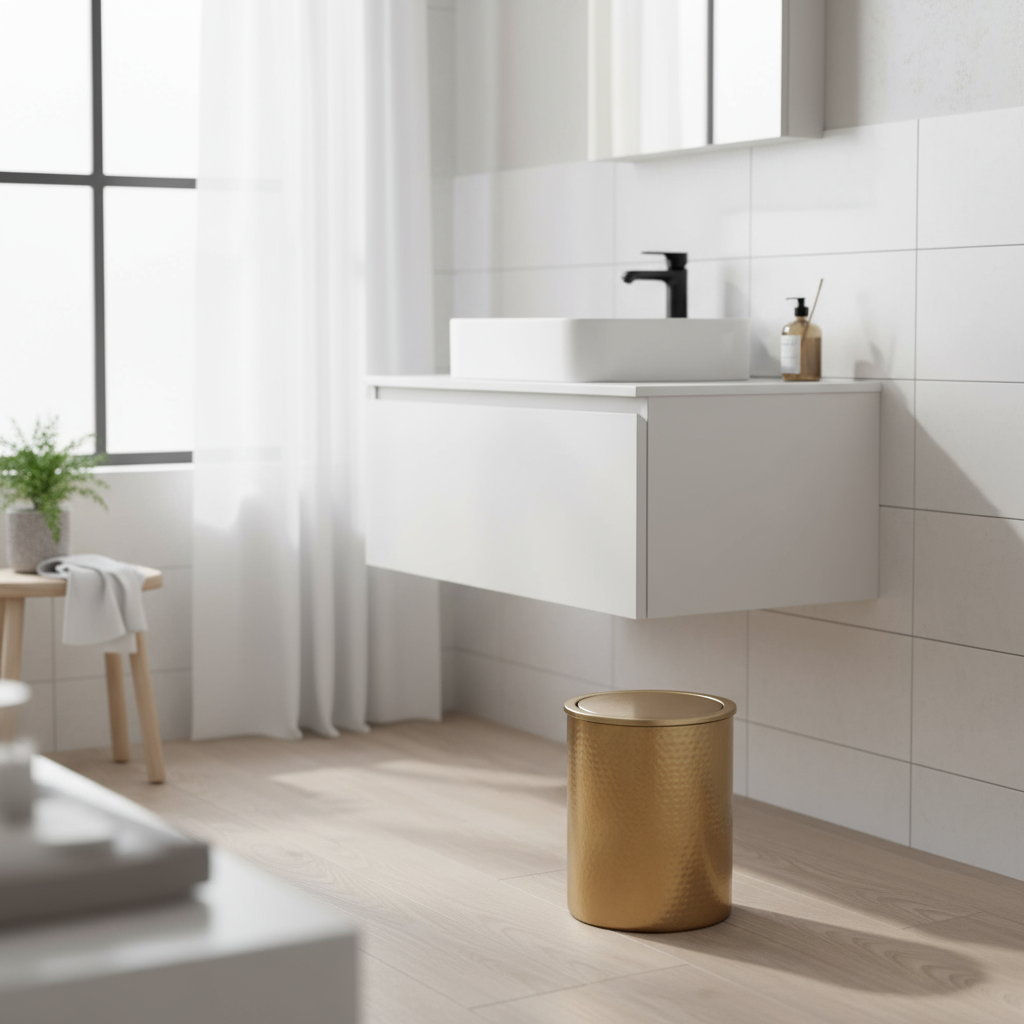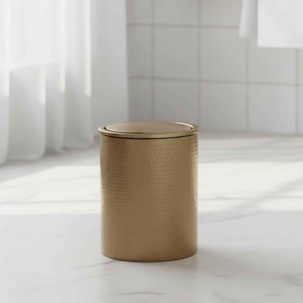 • Bronsefarget pedalbøtte med vippelokk