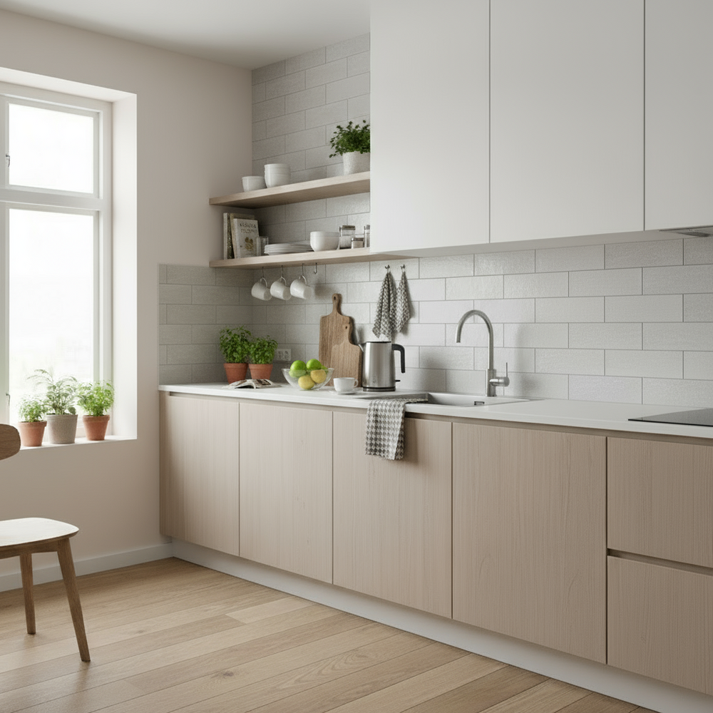 Du sparer både tid og penger med selvklebende veggfliser. Flisene monteres direkte på din eksisterende vegg, og er perfekt som sprutvegg og ellers på kjøkken, bad, vaskerom og gang.