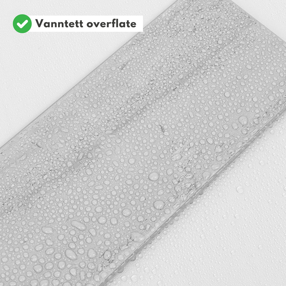 Holly selvklebende veggfliser er rektangulære fliser i størrelsen 30 x 7,5 cm kombinerer en stilren betong-look med enkel montering – helt uten behov for verktøy, lim eller fugemasse.