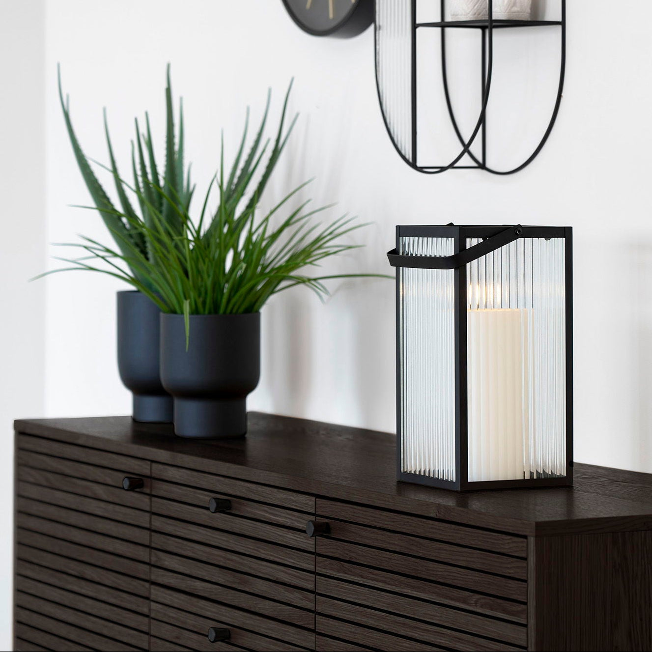 Kyoto sidebord i røkt eikefiner med svarte metallben – skråperspektiv