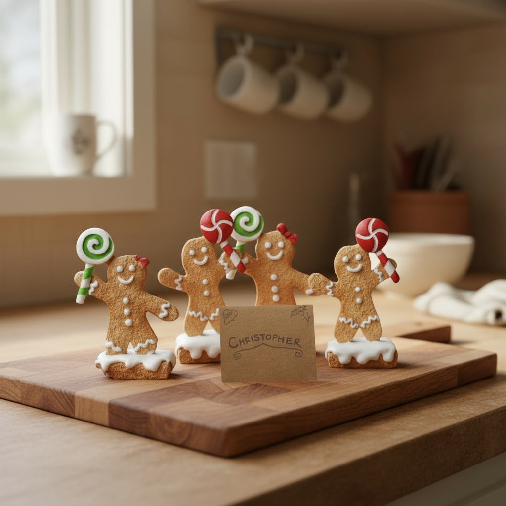 Disse sjarmerende kortholderne i form av pepperkakemenn er den perfekte dekorasjonen for julebordet. Med fire figurer som holder søte lollipops, gir de et lekent preg på enhver festlig setting.