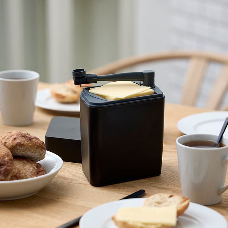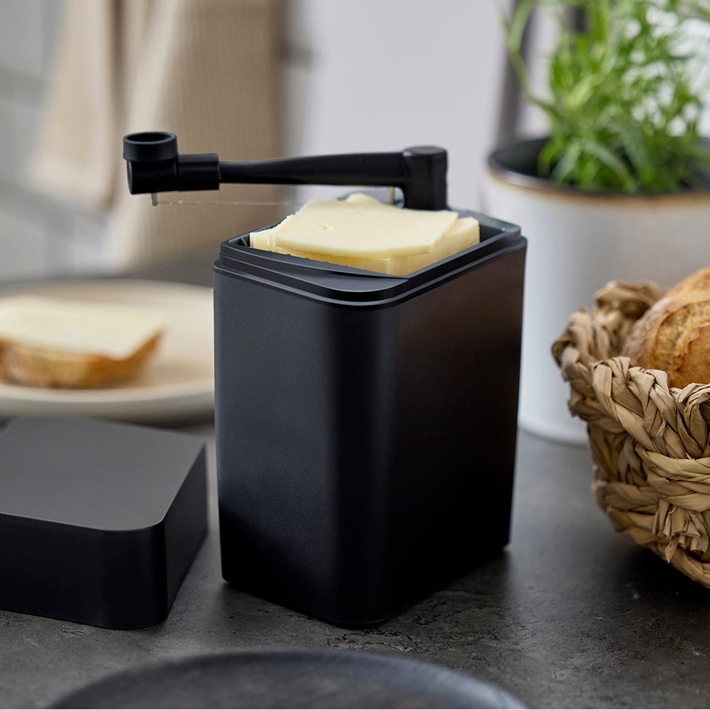 Hold osten fersk og klar til servering hver dag. Osteklokken Classic i svart fra Rosti kombinerer smart oppbevaring med integrert osteskjærer slik at du slipper å bruke kniv.