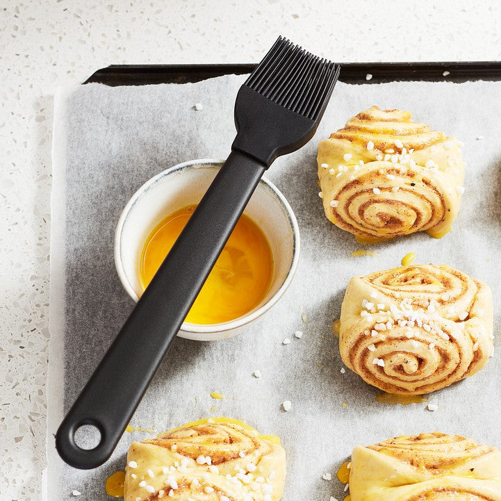 Silikonbørstene holder godt på væsken og fordeler den jevnt over overflaten. Perfekt til baking, grilling og steking, enten du pensler boller med egg, marinerer kjøtt eller smører olje i bakeformer.