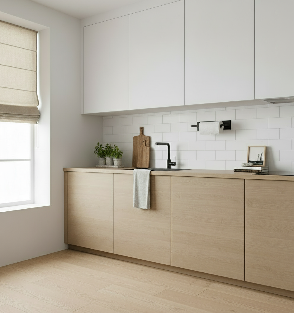 Hold kjøkkenbenken ryddig med vår praktiske selvklebende tørkerullholder til vegg. Denne smarte holderen gjør tørkepapiret lett tilgjengelig, samtidig som den frigjør verdifull benkeplass.