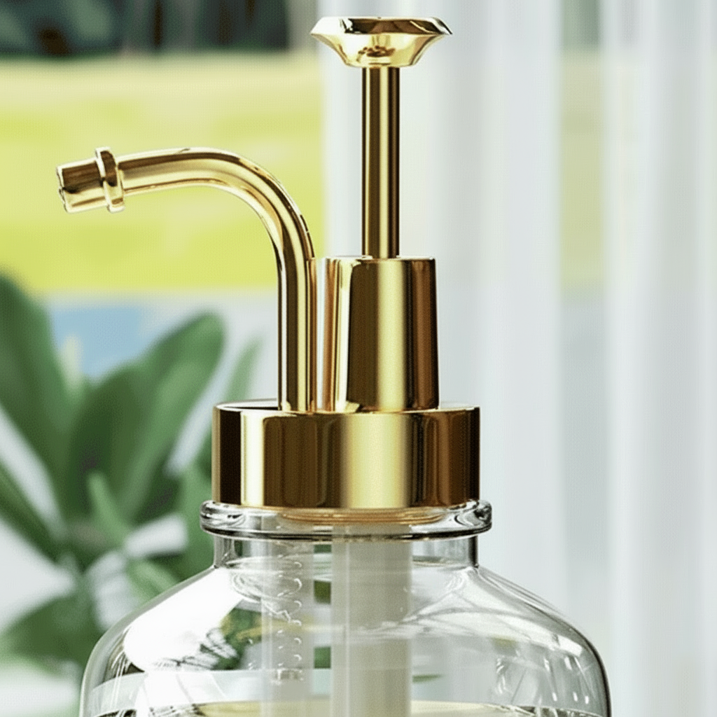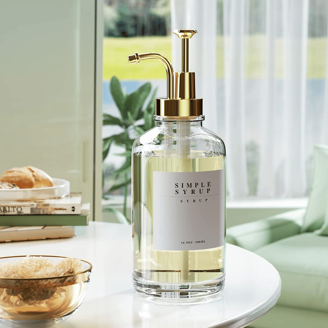Det transparente glasset lar deg se innholdet, mens pumpen i gull gir et gjennomført uttrykk. Enkle å fylle på og bruke – og et lekkert supplement til enhver kjøkkenstil.