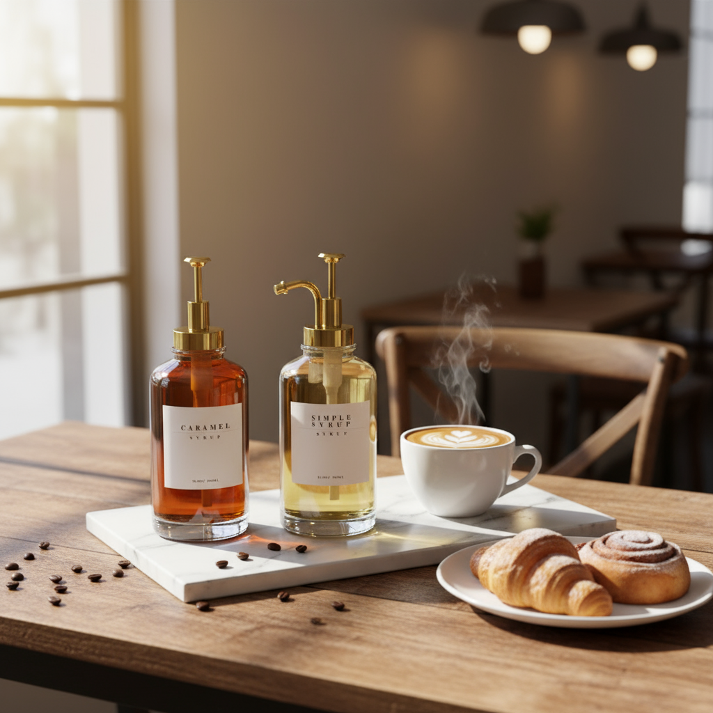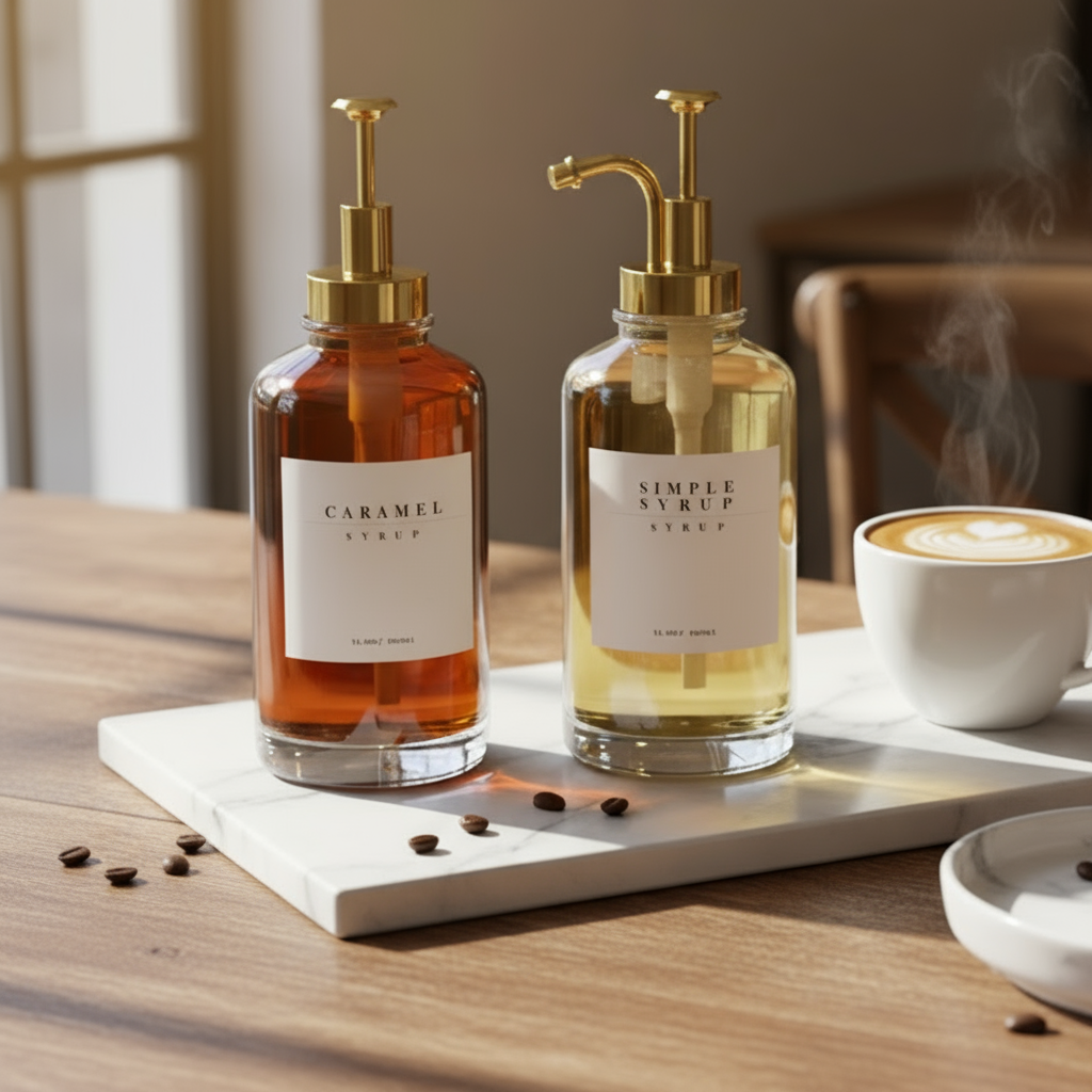 Sett et eksklusivt preg på frokostbordet eller kjøkkenbenken med disse sirupdispenserne i glass med gullpumpe. Dispenserne kombinerer dekor og funksjon på en flott måte og passer perfekt til sirup, honning, olje eller kaffesirup.