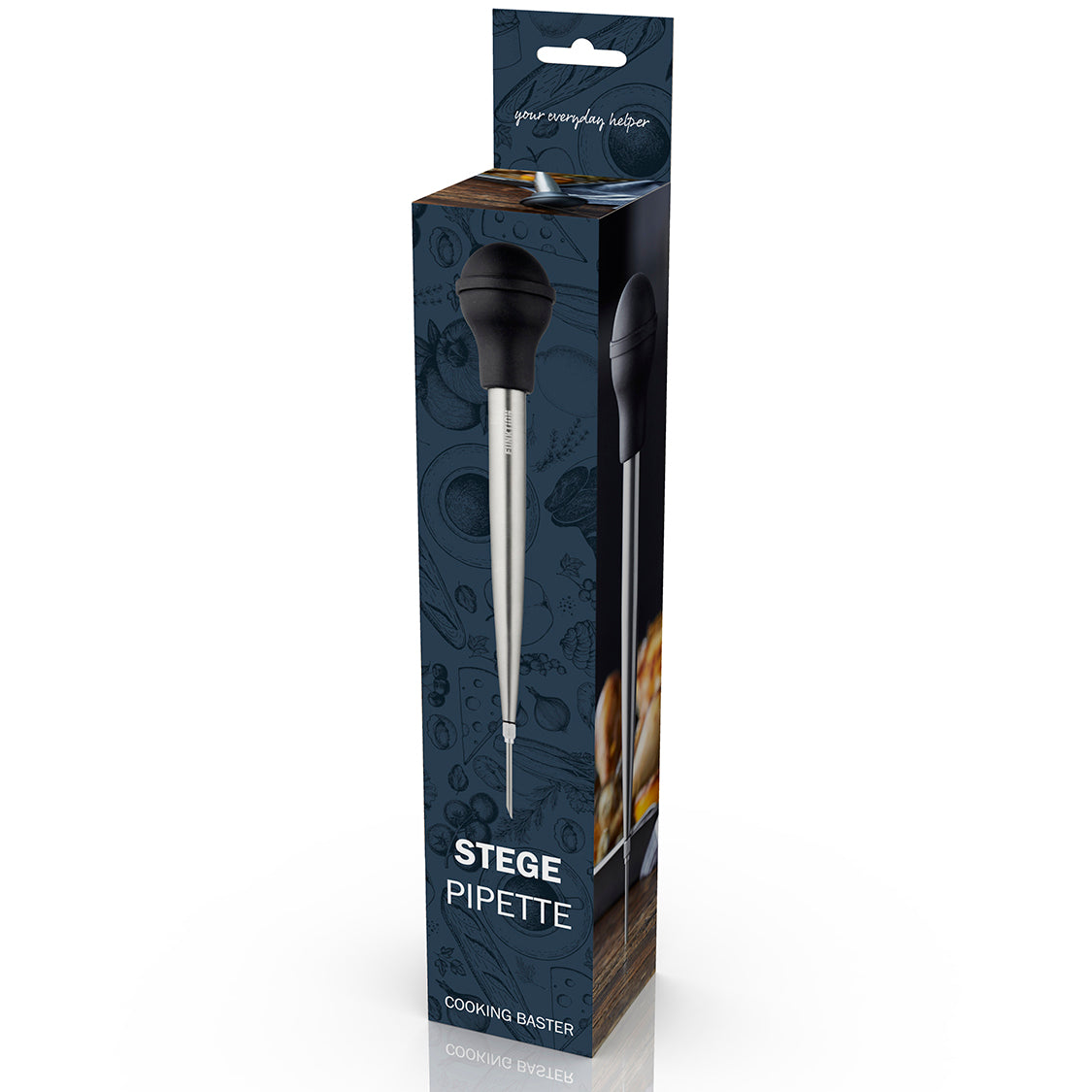 Den lange utformingen gir god rekkevidde, mens 32 cm lengde og varmebestandig stål gjør den ideell til bruk i varm panne og ovn. Du kan enkelt suge opp kraft, smør eller marinade og fordele det jevnt over kjøtt og råvarer.