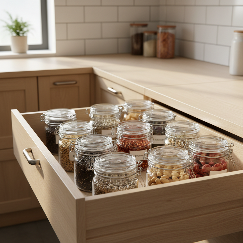 Et lite og praktisk sylteglass som gir deg full kontroll på oppbevaring i hverdagen. Perfekt for deg som vil organisere små mengder på en ryddig og oversiktlig måte.