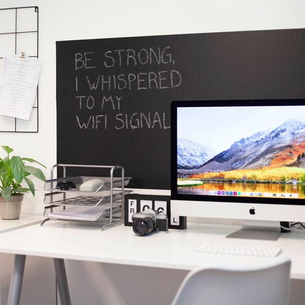 Beste av alt? I motsetning til tavlemaling så kan folien fjernes igjen i ettertid uten at den skader underlaget.