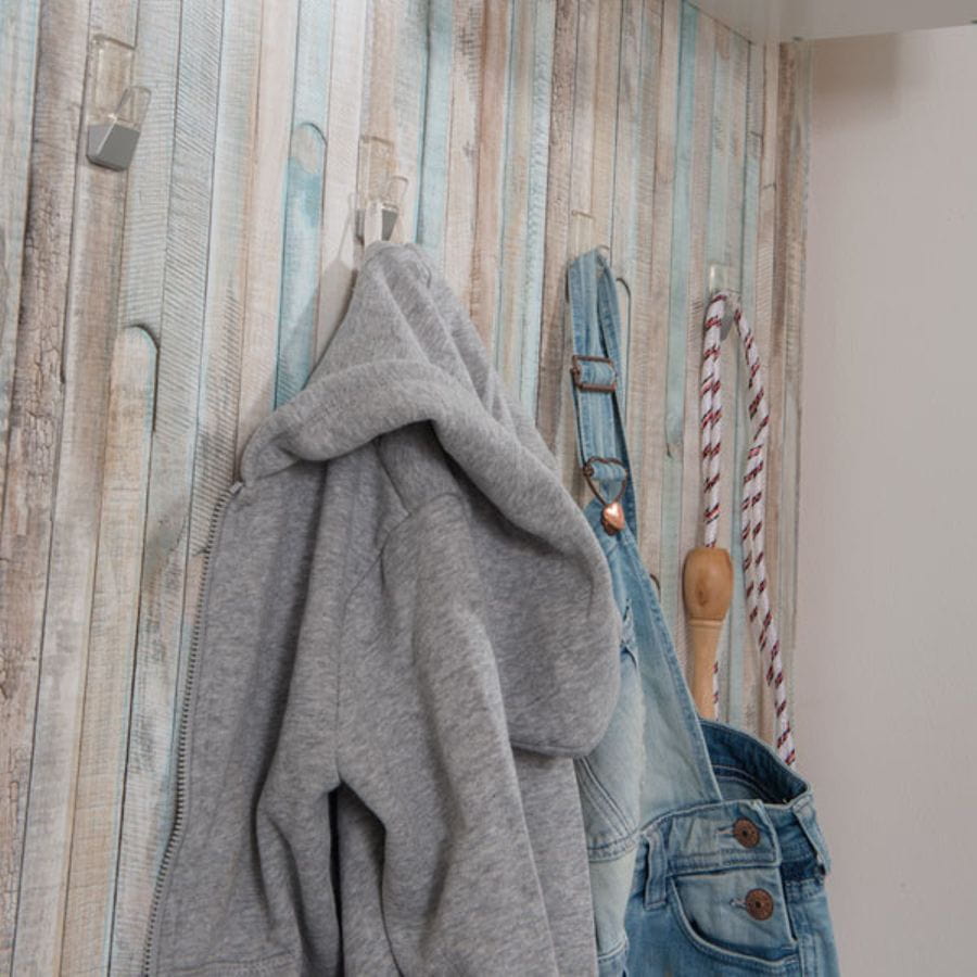 Rio Ocean kontaktplast imiterer drivved i form av planker med behagelige pastellfarger.