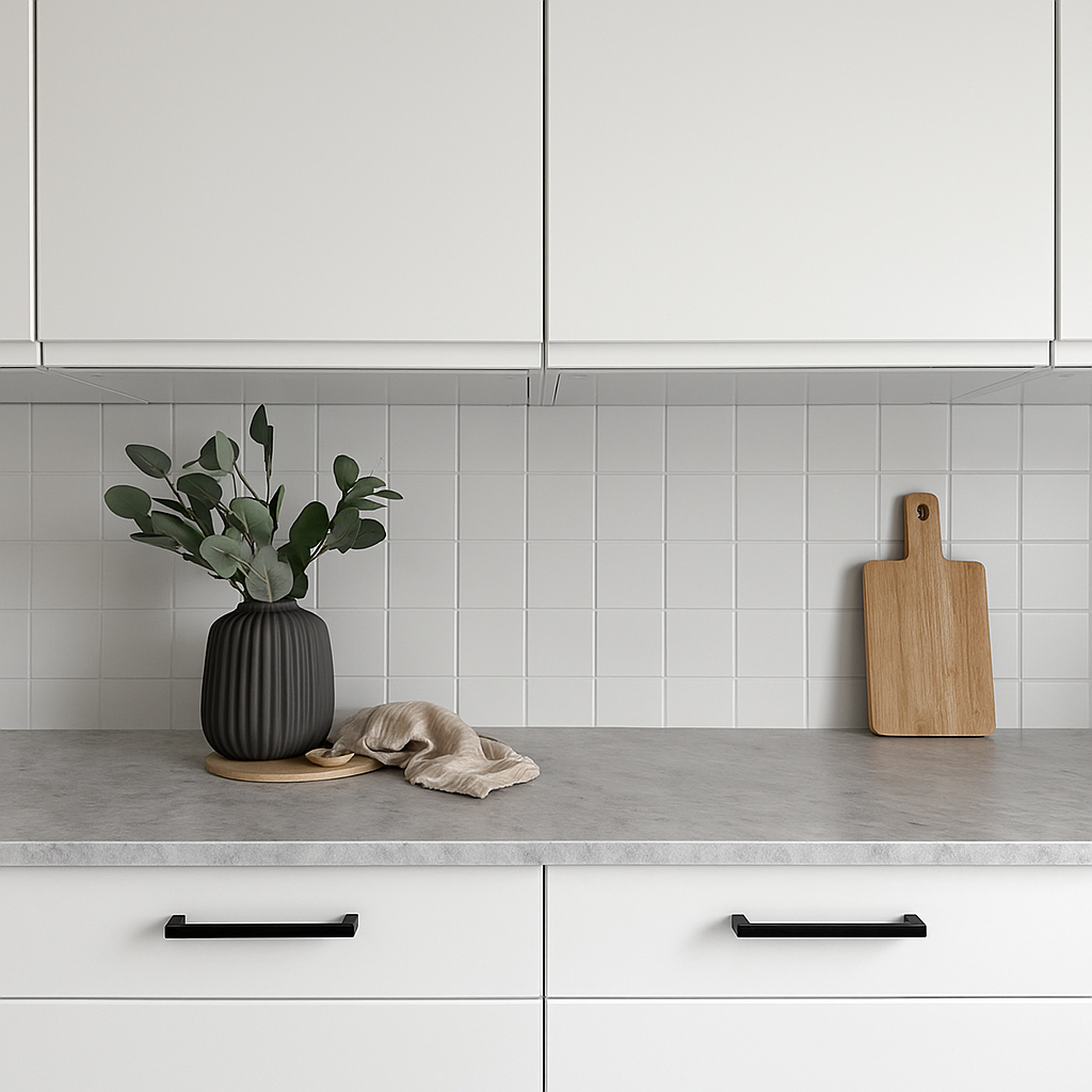 Moderne, slankt håndtak i sort matt til kommoder, skap, bad og kjøkken.