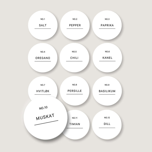 Organiser kjøkkenet ditt med våre etiketter til krydder. Perfekt for å holde oversikt over alle krydderne dine på en stilren og funksjonell måte.