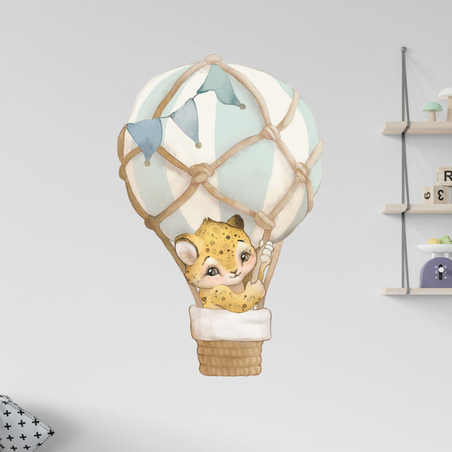 Denne flotte veggdekorasjonen er laget med en teknikk som etterligner vannmaling på lerret, og gir sjarm til barnerom eller lekerom. Motivet er av en søt leopard som holder fast i en luftballong. Klistremerket kommer i duse, rolige farger.