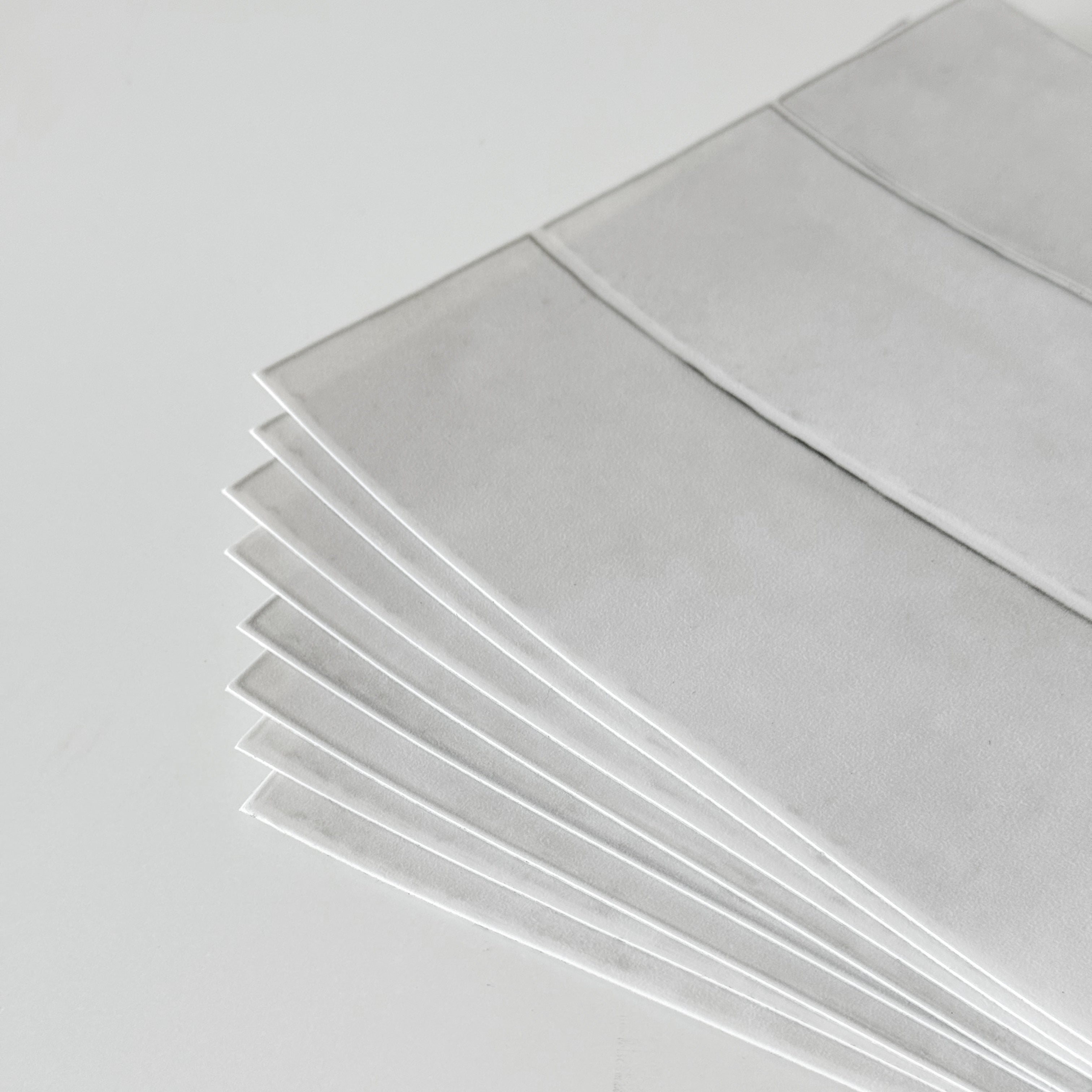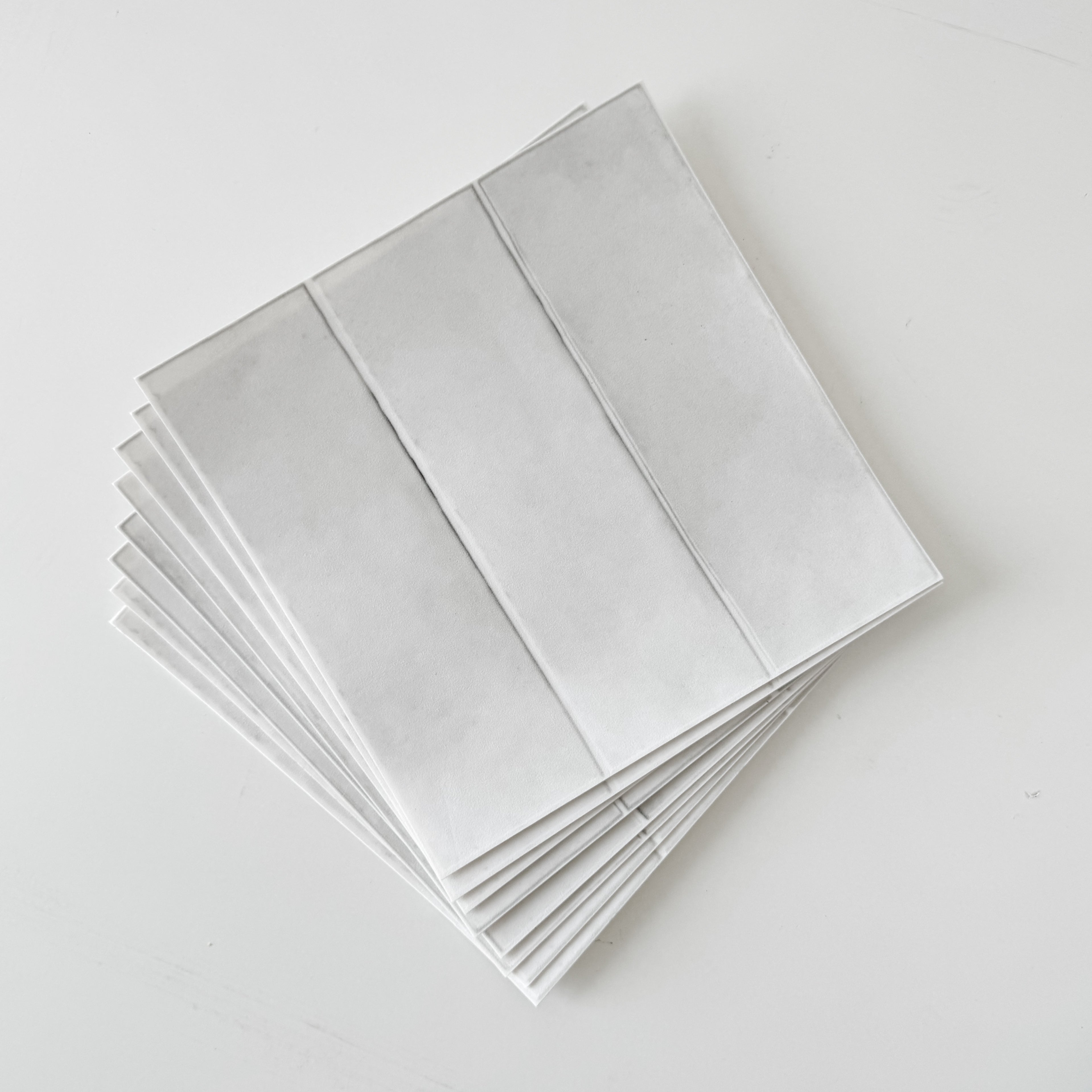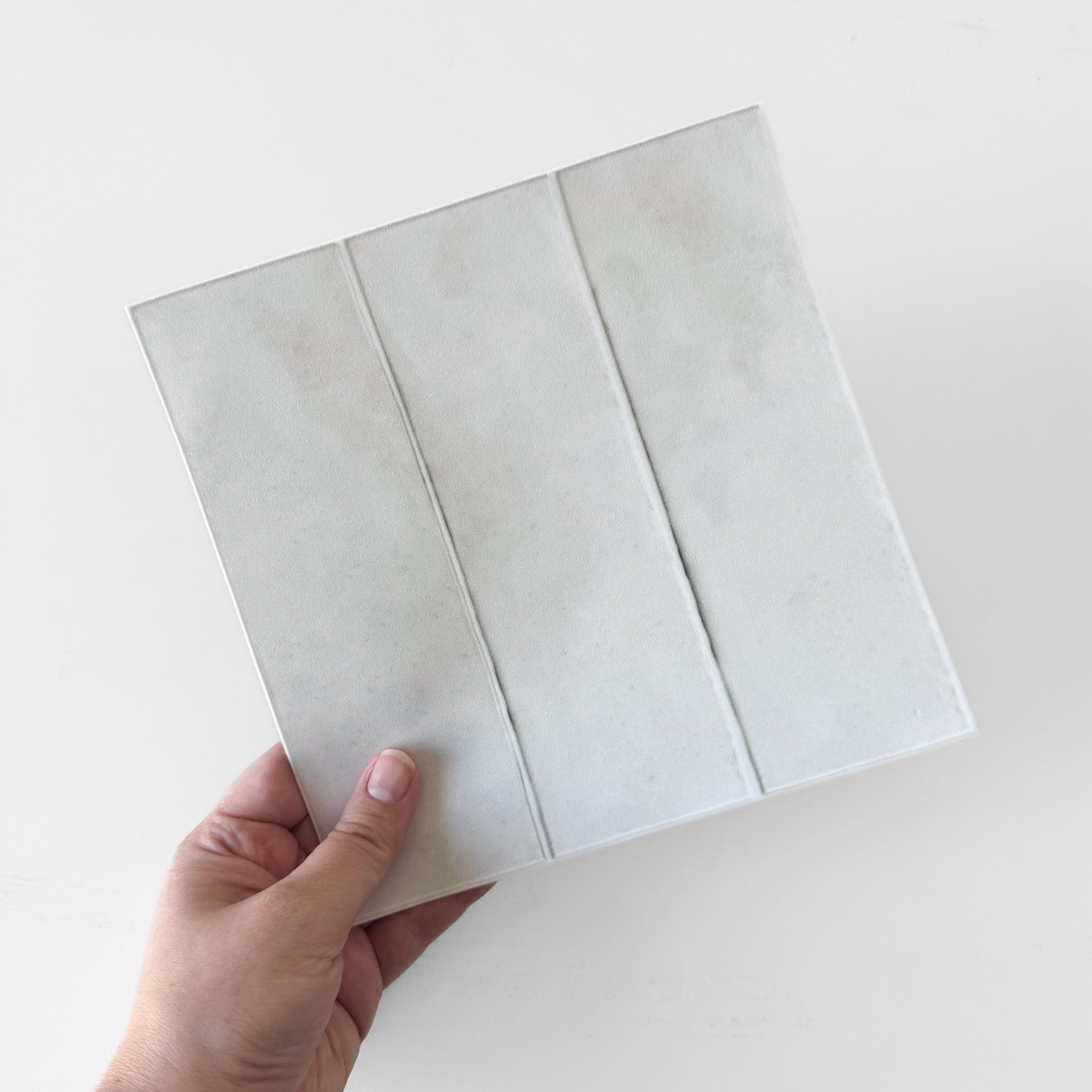 Katja lys grå selvklebende fliser gir et moderne og delikat uttrykk med inspirasjon fra håndlagde Zellige-fliser. Den lyse grå fargen gir rommet et rolig og balansert preg, mens den lett glansede overflaten tilfører dybde og liv til veggen.