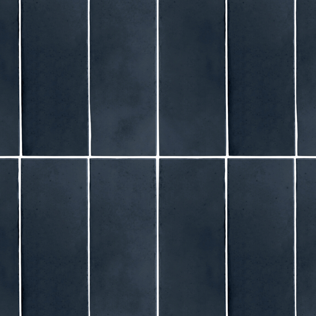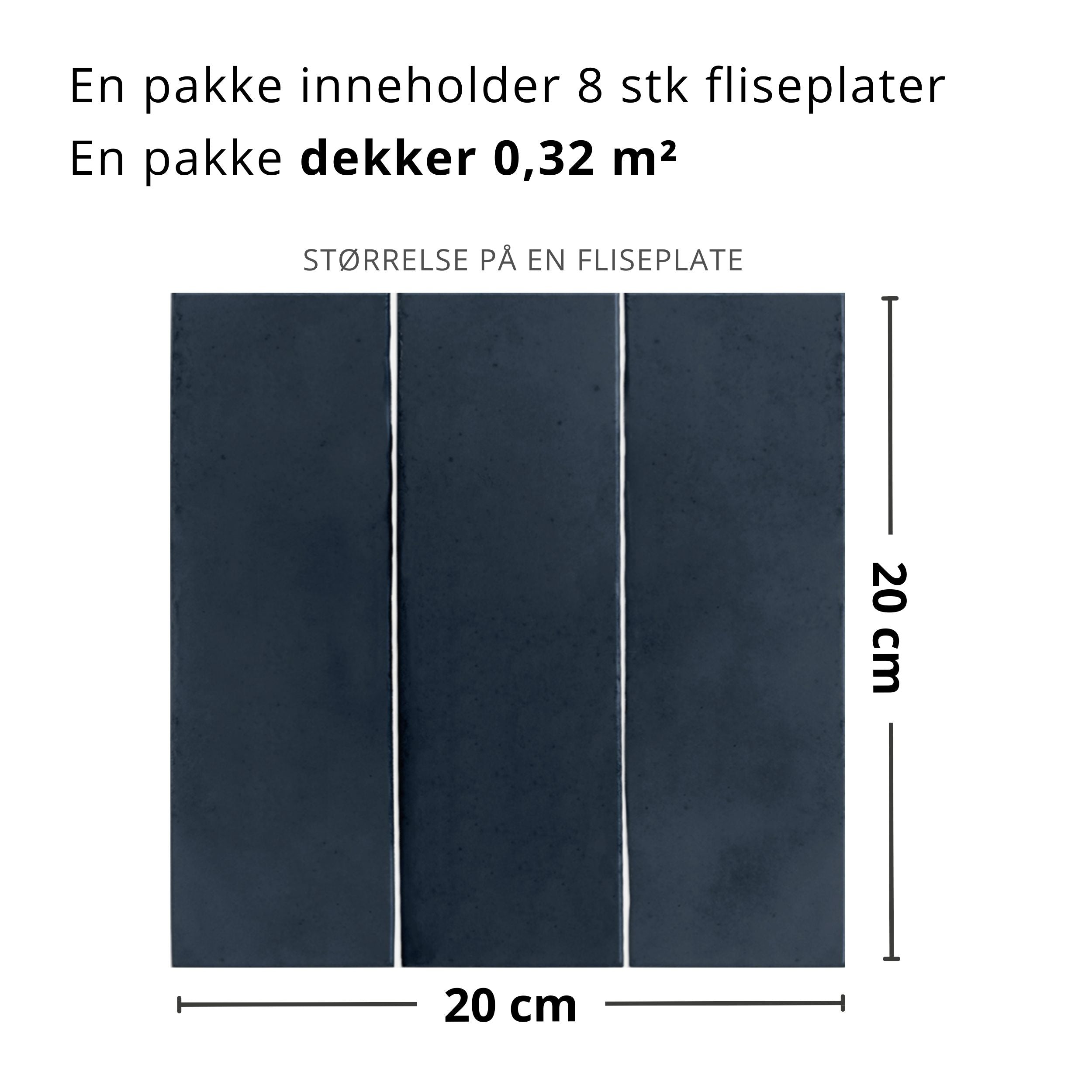 Katja midnattsblå selvklebende fliser har et moderne design i dyp blå med tynn, hvit fug. Katja er designet for å se ut som Zellige-fliser. Dette tøffe designet kan monteres enten horisontalt, vertikalt eller en blanding for å få en unik flisevegg.