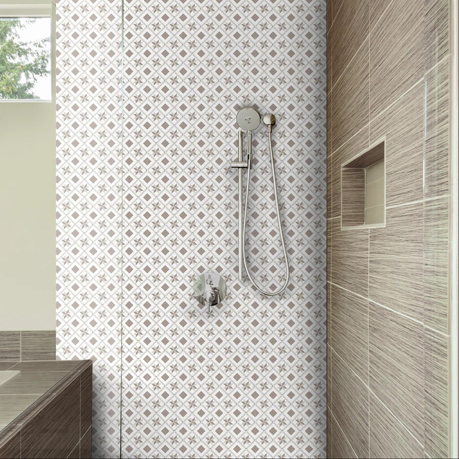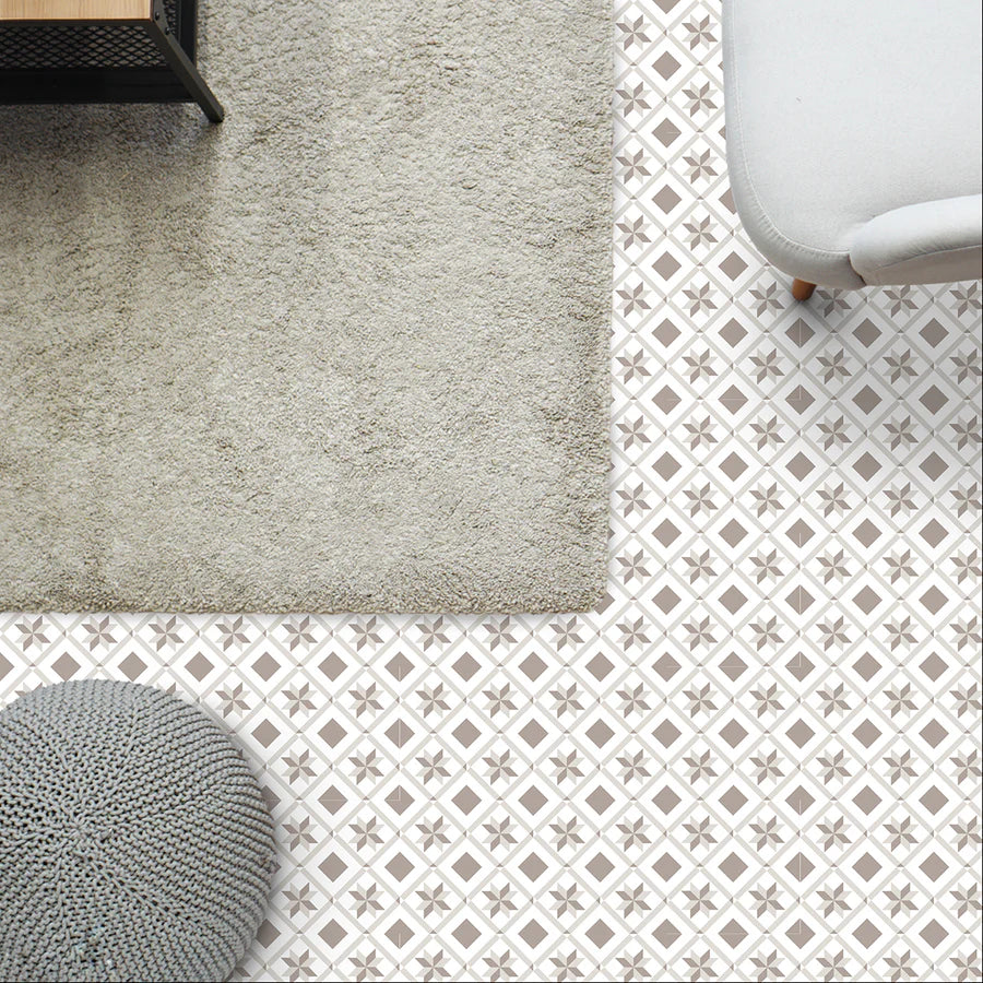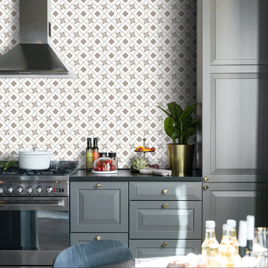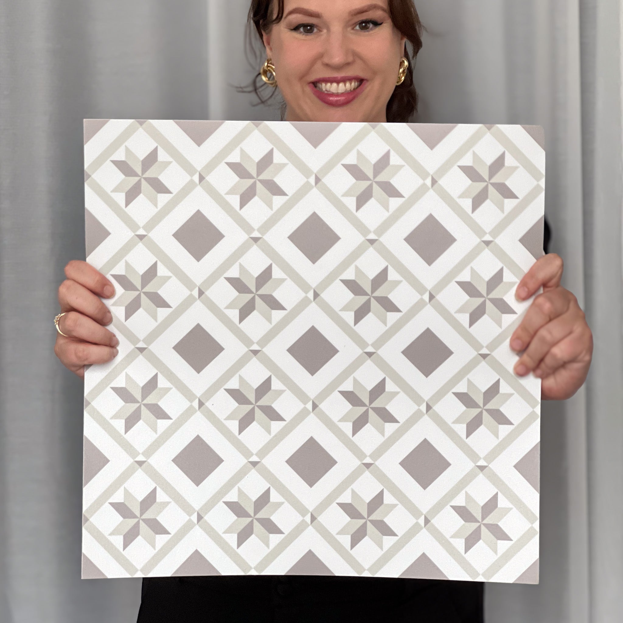 Oslo mini er moderne selvklebende fliser med historisk design inspirert av stjernemønster og flettede detaljer. Flisene passer perfekt for deg som ønsker å fornye kjøkken, bad eller vaskerom uten bruk av verktøy eller lim.