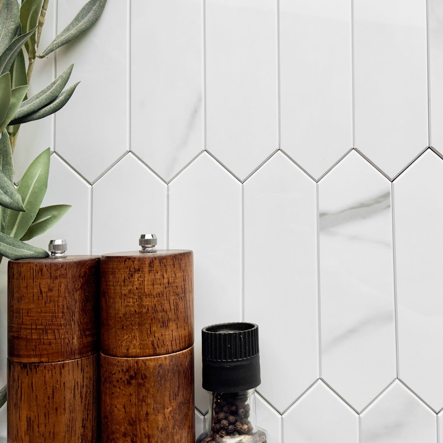 Vareprøve: Caia lang hexagon selvklebende veggfliser