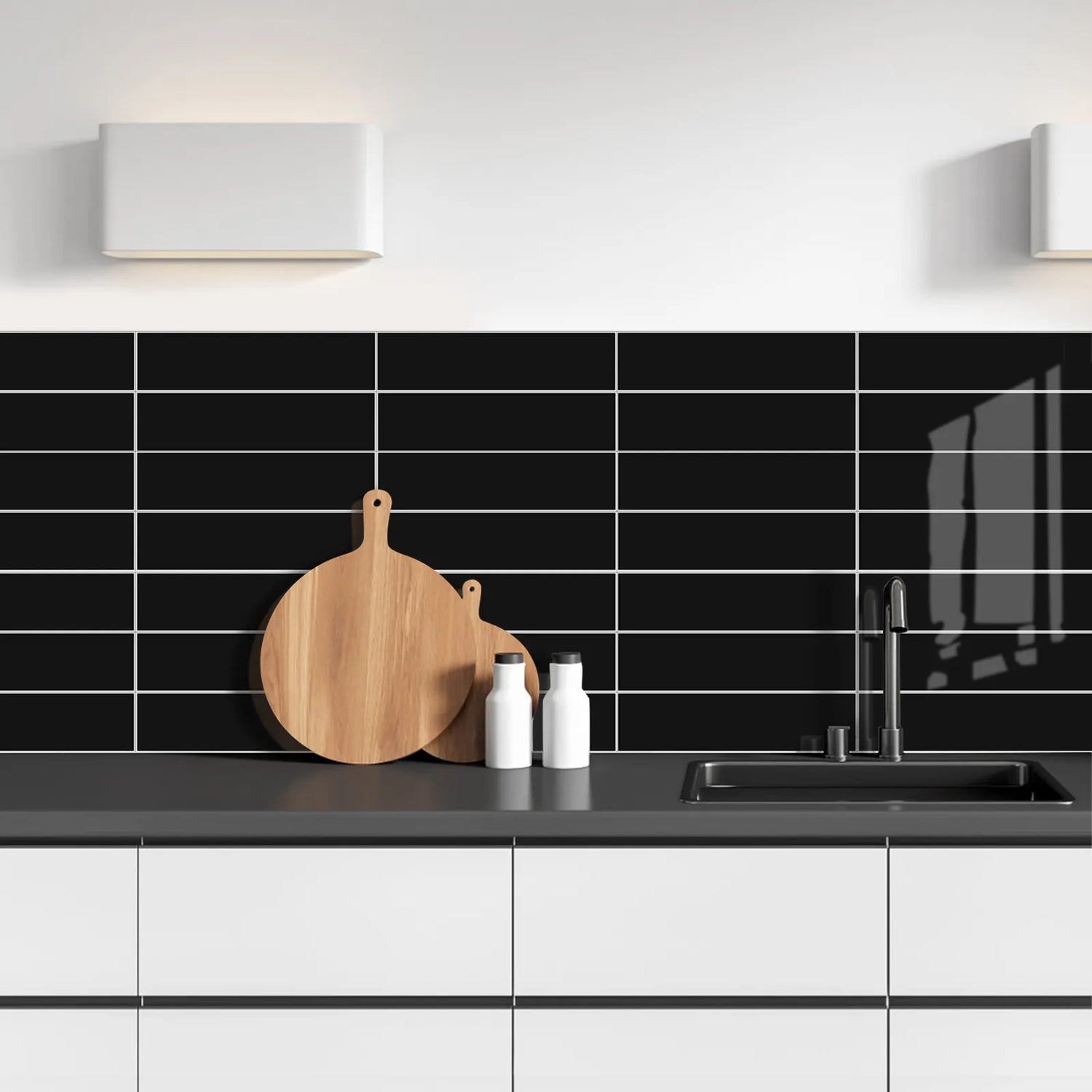 Vareprøve: Hailey sort selvklebende veggfliser