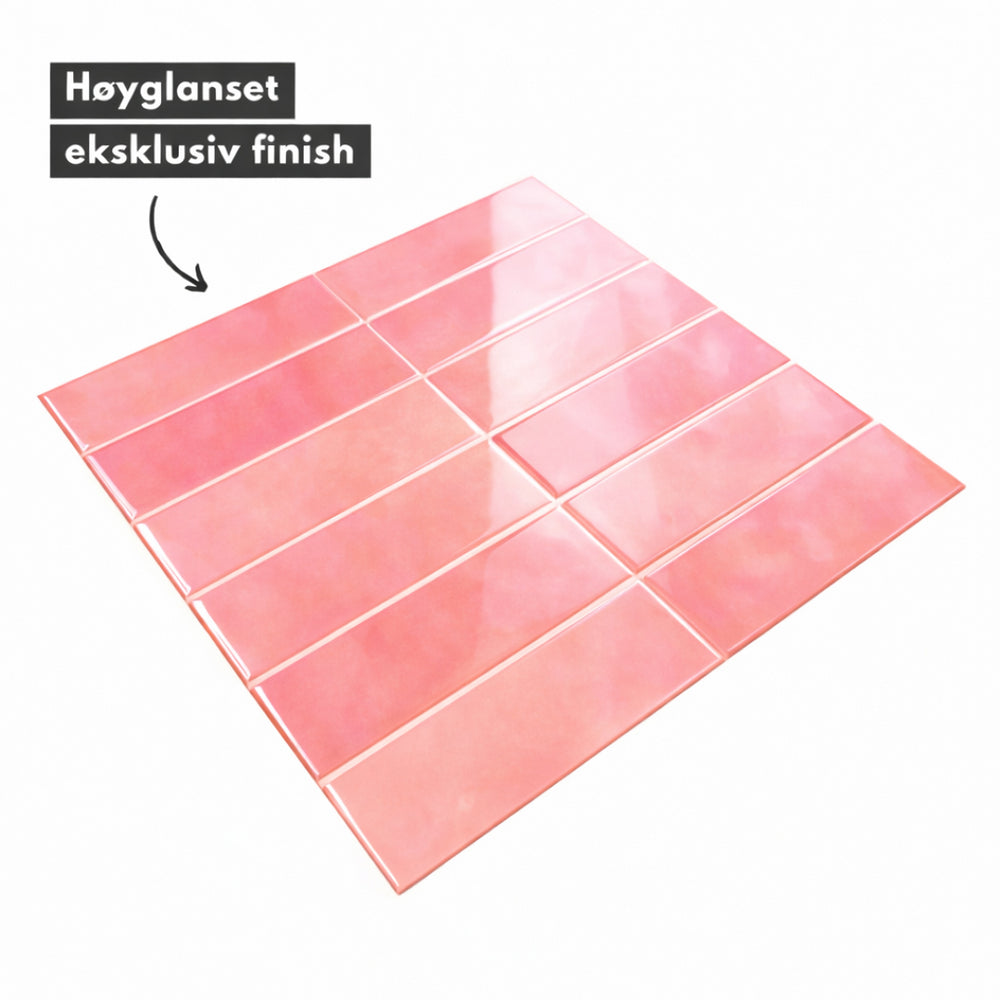 Våre selvklebende fliser har en realistisk, glossy overflate som gir en ekte flisfølelse. De kommer i et klassisk rektangulært design, som gir en følelse av dybde og karakter til veggen din. Installeringen krever ingen verktøy eller ekstra lim, bare fjern beskyttelsesfilmen og fest flisene direkte på en ren og tørr overflate.